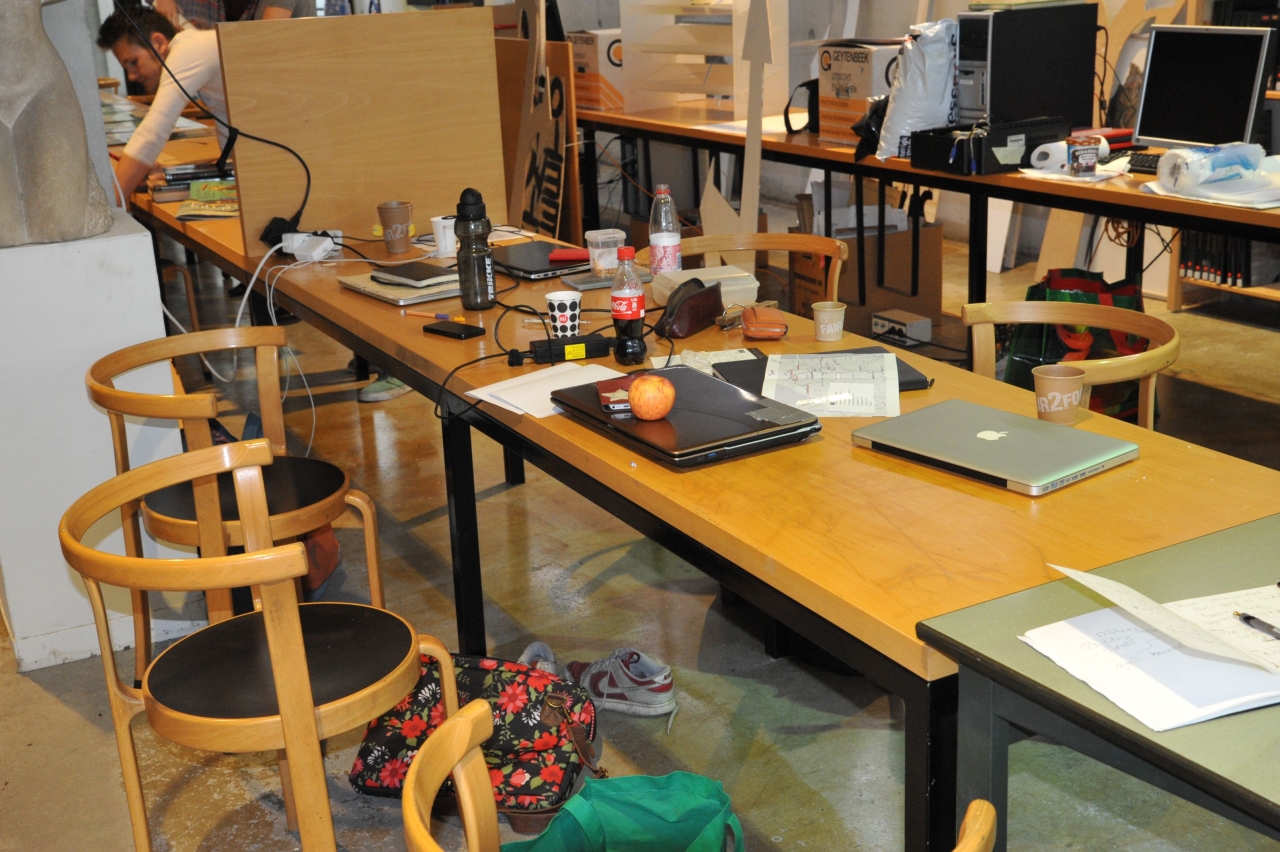 Het tijdelijke episch centrum van de eindexamengroep van iArts bevindt zich in de bibliotheek van de kunstacademie aan het Herdenkingsplein van Maastricht. Vijf jonge mensen hebben hun overvolle planning afgestemd voor een gesprek over hun eindsprint. Er wordt koffie gehaald, de groep neemt even pauze.