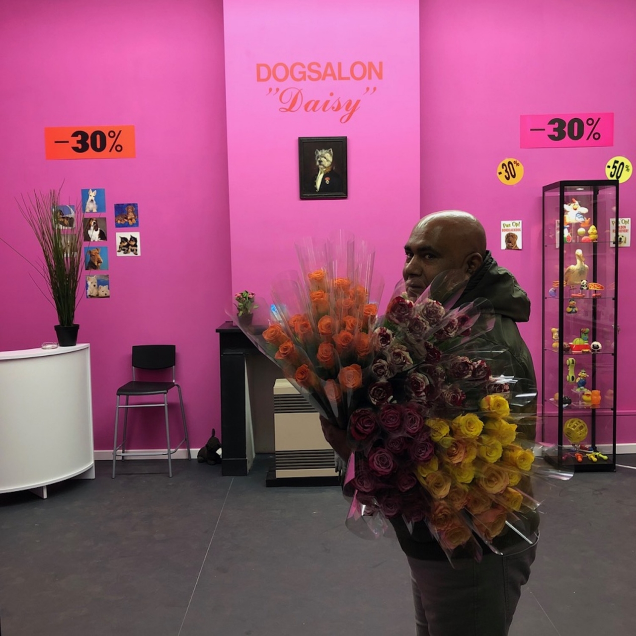 Ik heb in 2016 voor Manifesta in Zürich een hondensalon gemaakt: Dogsalon Bobby. En nu heb ik een Belgische hondensalon gemaakt: Dogsalon Daisy. Daarvoor moet ik dan wel op zoek en zo kom ik in al die winkels en dat is dan nieuw voor mij, want ik heb nooit een hond gehad. Ik heb een kat. Dan zie ik al die speeltjes en dan denk ik, dat is toch niet mogelijk. Daarom heb ik er een compositie van gemaakt. Ik ben een archeoloog van onze foute tijd. Ik heb ook wel van die banale kitscherige museumpjes gemaakt, zoals een Lederhosenmuseum, een Bidetmuseum, een Stemhokkenmuseum in een reeks die ik later cultureel toerisme genoemd heb. Zo heb ik een Romeinse straat gemaakt in Middelheim, het Antwerps sculpturenpark, een aanrader voor iedereen. Ook heb ik een archeologische opgraving van een huis uit de twaalfde eeuw gemaakt op de Busan Biënnale in 2006 in Korea. Het is een spel over echtheid en fictie. Het is een draad door mijn werk. In die reeks van archeologische sites heb ik ook dat werk in Münster gemaakt van een opgegraven kerk.”
