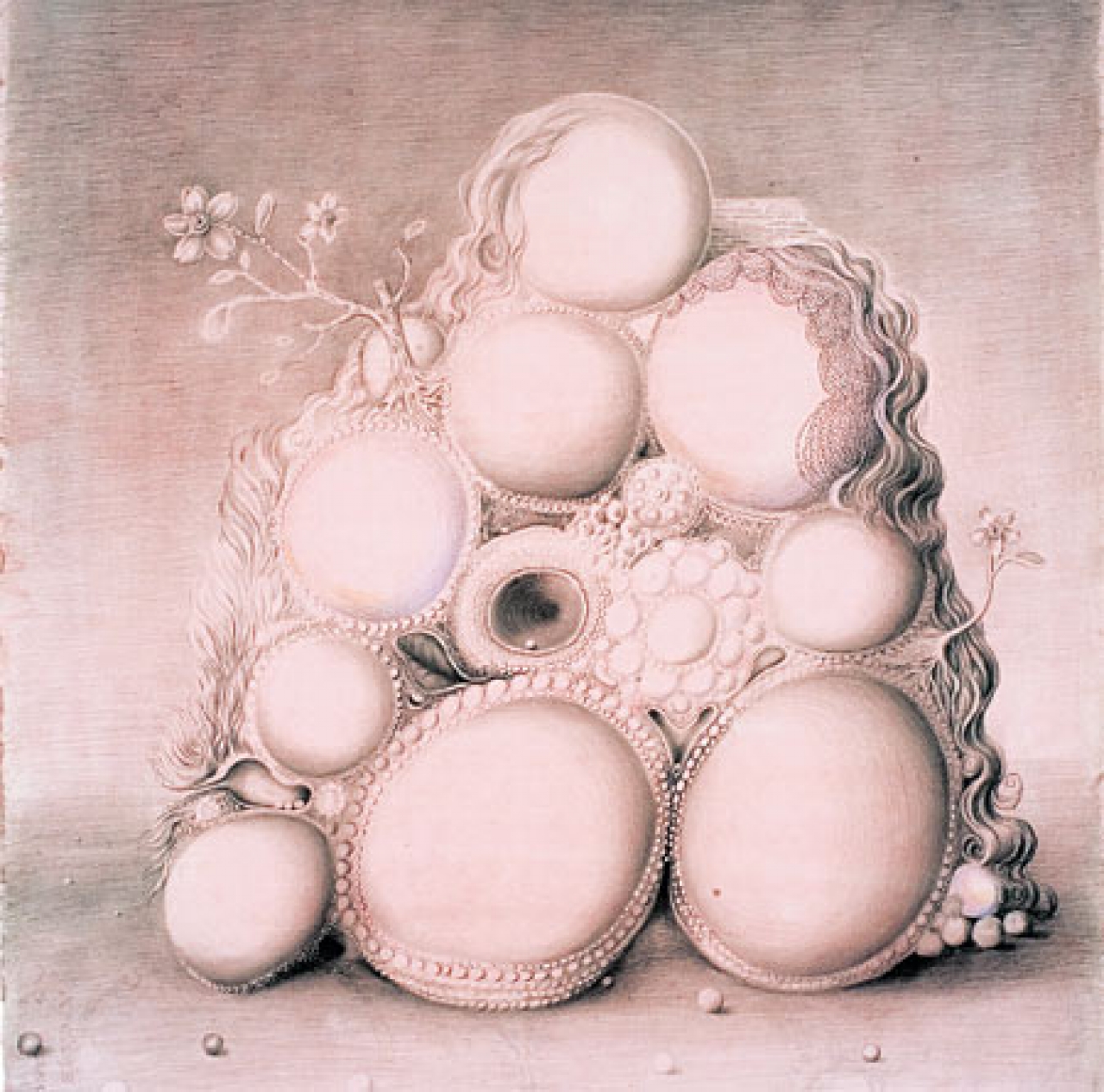 Nog steeds spartelen haar tekeningen van plezier, het fonkelt, het straalt en haar onderwerpen zijn in de loop der jaren wat abstracter geworden, Over man, vrouw, over magie en het onzichtbare. Haar nieuwste serie in zachtroze kent titels als ‘Logos eros’, ‘Guts’, ‘Fingerspitzen’, ‘Stuffed’.