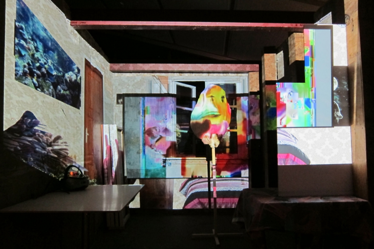 De installatie van Fibbe en Wiedijk laat zien dat perceptie en projectie manieren zijn waarop je een wereld rondom creëert. Het internet werkt als een broeikas voor het rare, maar het geeft mensen ook de kracht zich te uiten in de echte wereld. Meer dan een plotse fixatie, bijten tieners zich vast in hun cross-over bestialiteit en bespreken ze in chatboxen en op fora hun hang naar rauw vlees maar ook de mentale gevolgen van hun ‘awakening’ en de daaropvolgende ‘coming out’ bij de familie. Ze eigenen zich terminologie van ‘species dysphoria’ en LGBTQI+ toe en spreken over de semi-transformatieve eigenschappen die ze ervaren, of die ze kunnen bedenken. ‘Phantom Shift’: wanneer je de ledematen van je ‘spirit animal’ kan voelen.