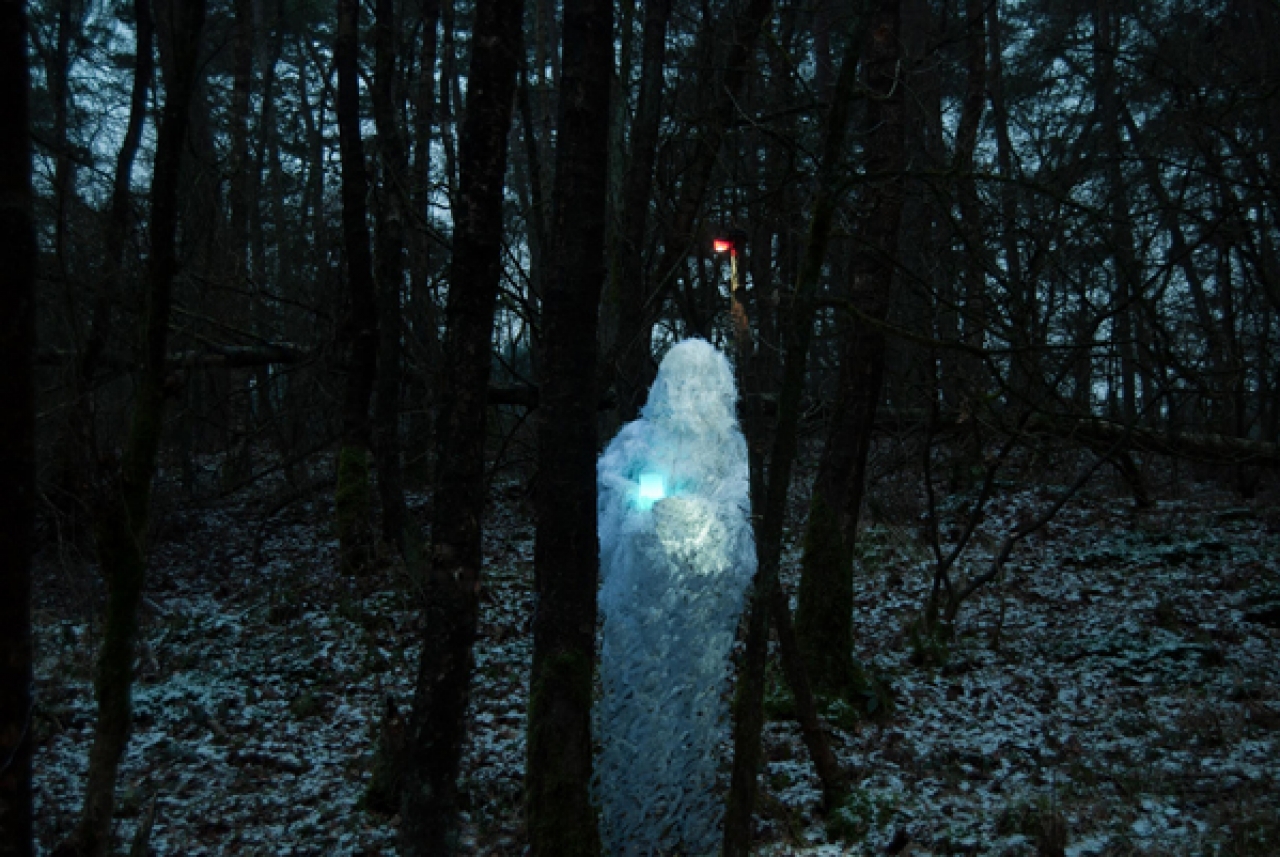 Tijdens haar residentie bij Kunsthuis SYB werden de Friese bossen een plek waar de wezens tot leven konden komen. In een trage choreografie evolueert een tableau vivant van vervormende figuren. Voortdurend in flux aanbidden ze het water — aanbidden, zonder oppressie —, onderstreept de kunstenares.