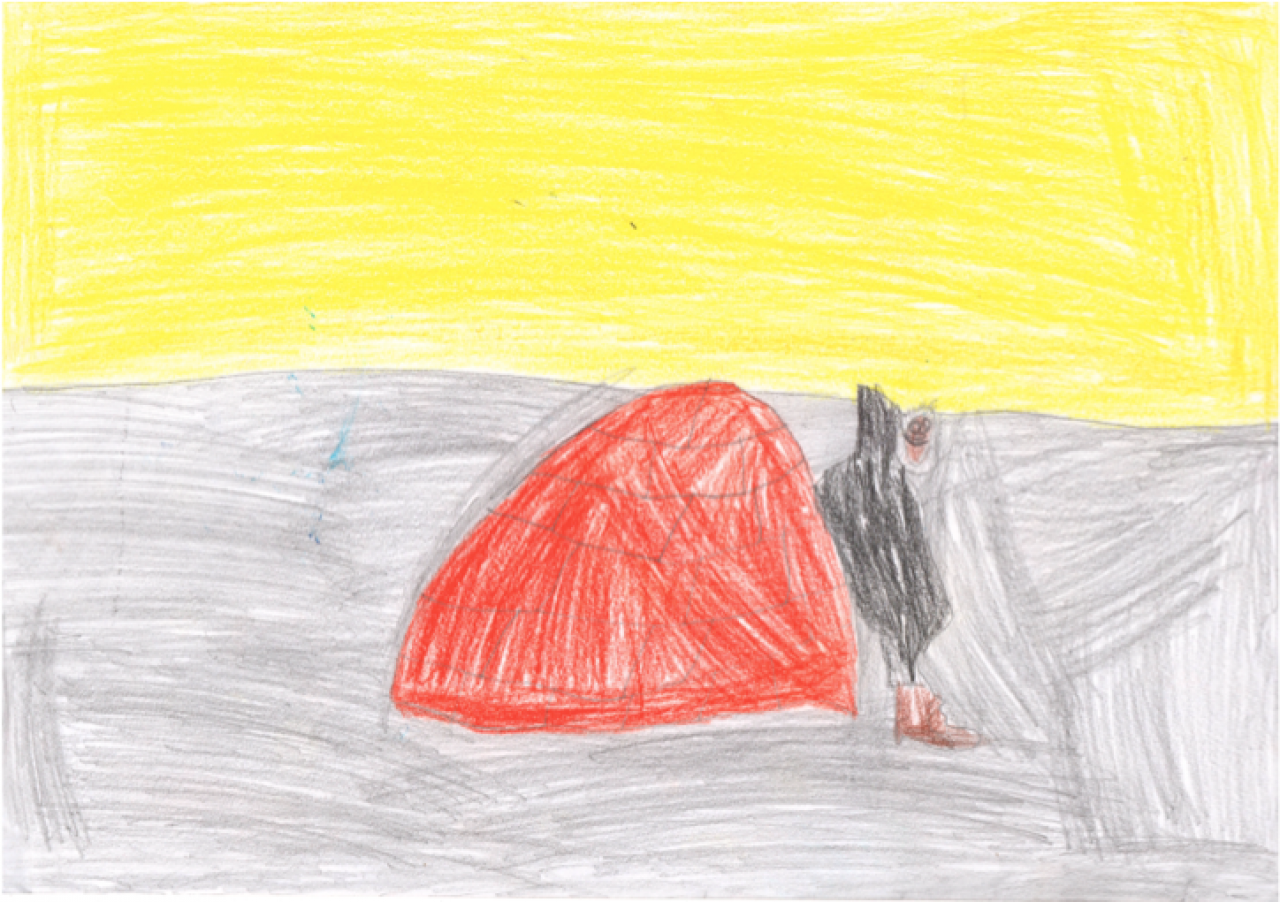 Scarlett Hooft Graafland dagdroomde als klein meisje al over Indianen en Eskimo’s. Nu reist ze de wereld over om mensen in allerlei ‘exotische’ oorden te fotograferen. In Canada ontdekte ze dat de jonge Inuits graag op Facebook zitten en dat de ouderen met hun blote handen iglo’s kunnen bouwen, zoals deze iglo van grenadine. Dyon zag dit kunstwerk wel zitten en heeft een uur lang snoeihard zitten kleuren.