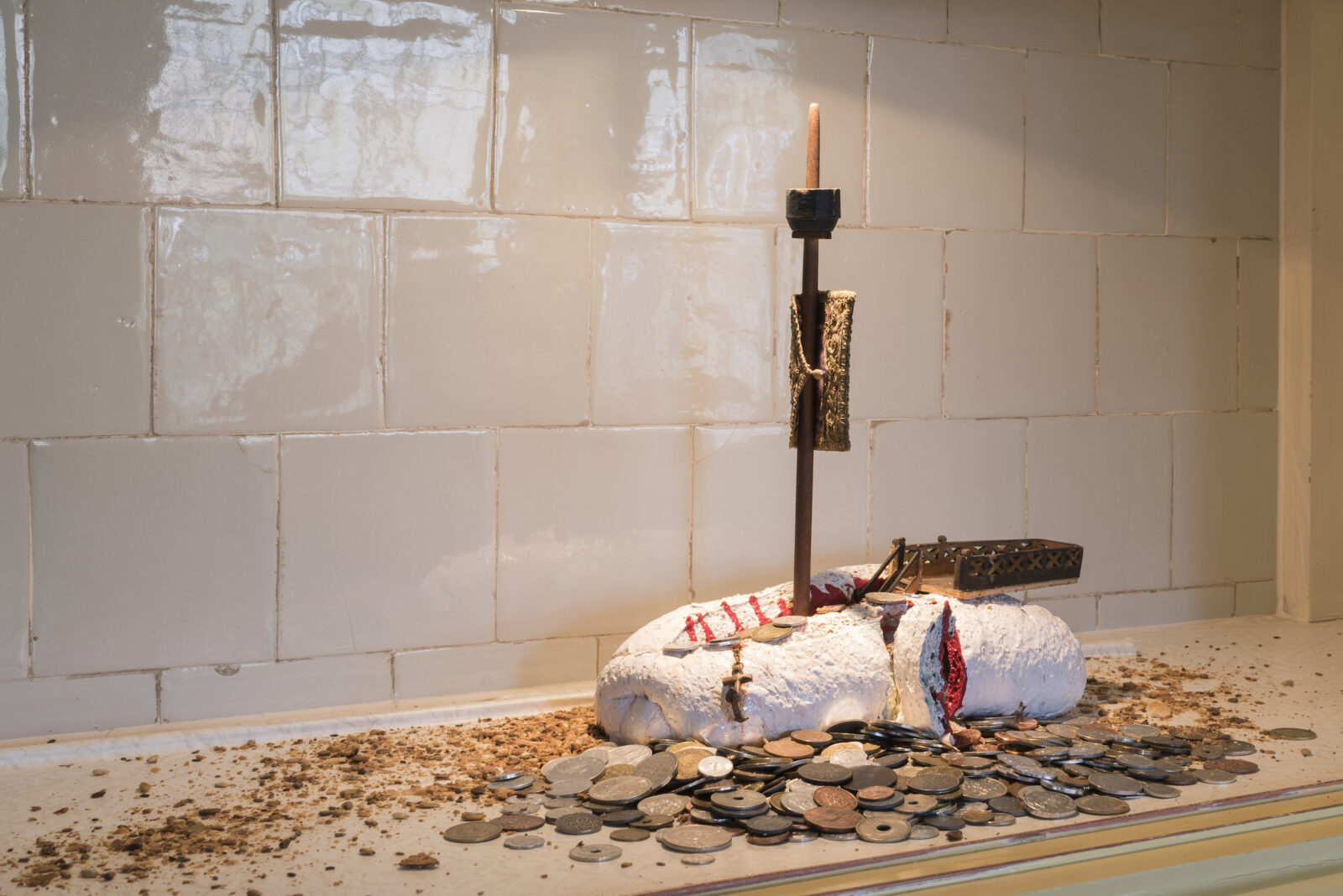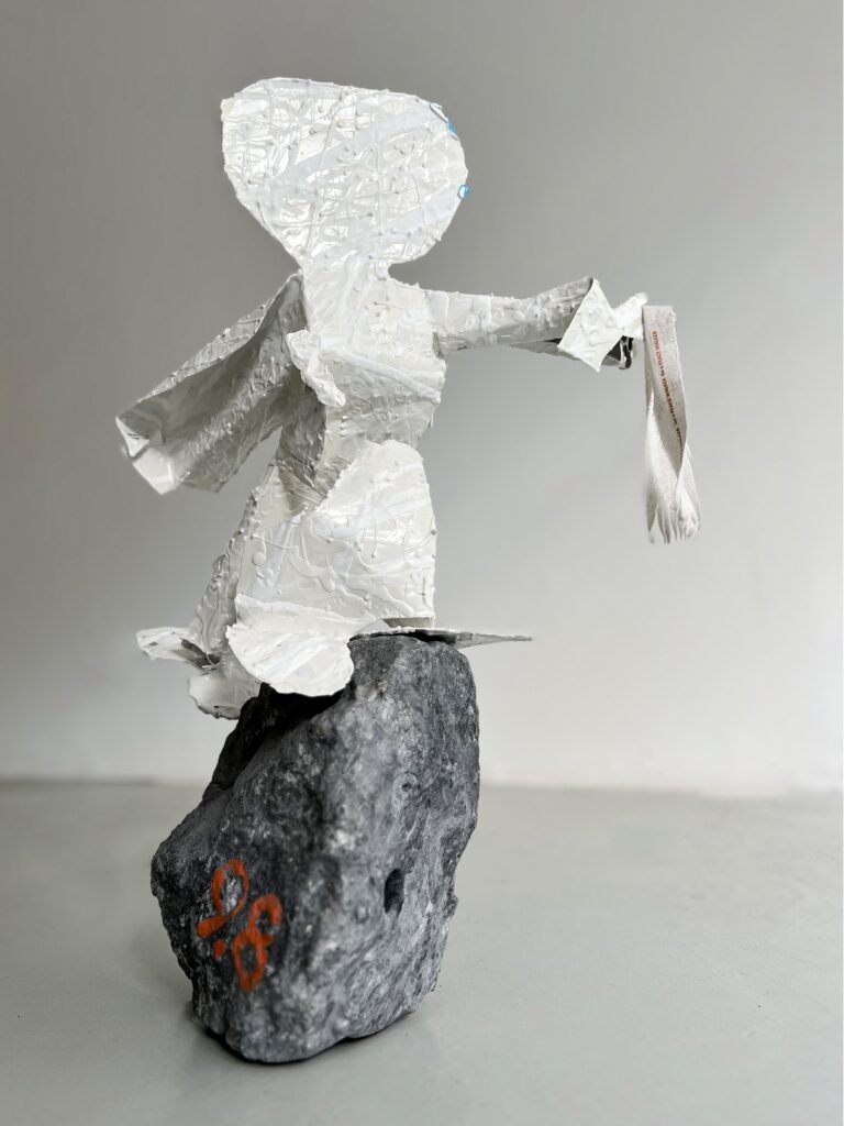‘Hoe enerverend ook, toch kon ik op de Rijksakademie niet goed mijn swing vinden. Ik had last van mezelf. Door neuro-diversiteit ben ik nogal chaotisch. Het was voor mij niet makkelijk om er iets uit te halen. Wel kreeg ik in 1994 via Theo Tegelaers mijn eerste solotentoonstelling in W139. Geweldig vond ik dat! Alle sculpturen zweefden in de ruimte. Er waren geen sokkels. Riekje Swart die toen eigenlijk net was gestopt met haar galerie, kwam kijken en heeft toen toch nog een tentoonstelling met mij gemaakt. Door haar oprechte belangstelling voelde ik me erkend. Een gestage productie heb ik nooit kunnen ontwikkelen, maar ook al maak ik maar een werk per jaar, ik blijf beeldend kunstenaar. Ik heb twee kinderen gekregen en tijdens mijn zwangerschappen ben ik telkens negen maanden totaal overprikkeld, misselijk en futloos geweest. Dat was voor mezelf maar ook voor mijn partner en mijn omgeving niet aangenaam. Ik heb na de scheiding mijn kinderen opgevoed in goed co-ouderschap.