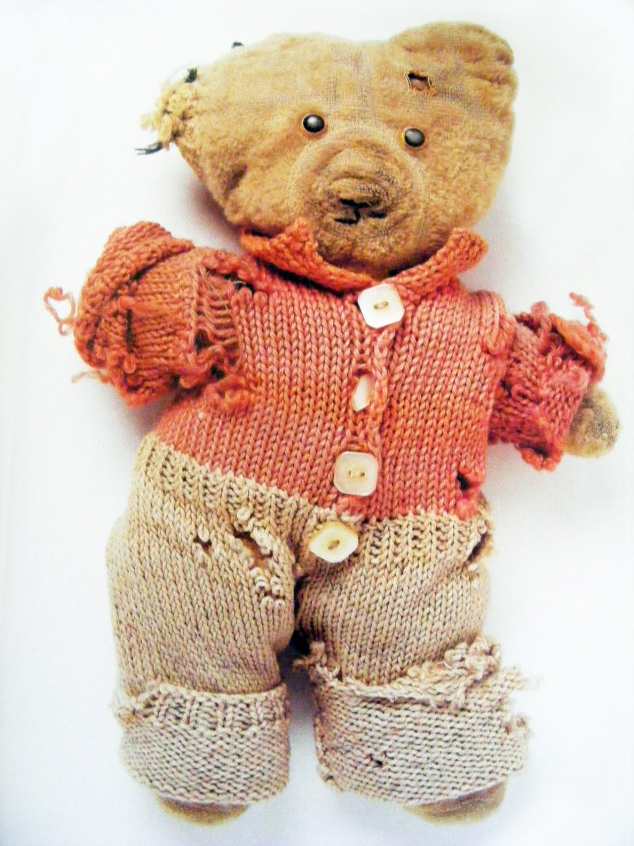 Toch is Perry’s motorfiets niet alleen maar jolijt. Op de bagagedrager heeft de kunstenaar een delicaat schrijntje gebouwd voor Alan Measles, zijn tot op de draad versleten teddybeertje. Het knuffeldier functioneert als zijn persoonlijke avatar en groeide uit tot een belangrijk personage in zijn werk. Ooit, toen Perry nog een onbegrepen jongetje was dat werd verstoten vanwege zijn heimelijke voorliefde voor meisjeskleding, vormde Measles zijn enige bondgenoot. De behoefte aan ouderlijke liefde, begrip en erkenning wist hij te transporteren naar het stoffen beertje. Een coping-mechanisme van jewelste dat ervoor zorgde dat Perry niet ten onder ging aan de zelfhaat die zoveel travestieten en transgenders parten speelt. Measles groeide uit tot een gekoesterde godheid binnen Perry’s visuele mythologie en komt veelvuldig terug in zijn tekeningen, tapijten en kostuums. Achterop de motor zit dus Perry’s innerlijke kind en de rollen zijn ondertussen omgedraaid. Als eerbetoon aan het verworpen jongetje van vroeger vergezelt Measles de artiest bij ieder nieuw ritje, expositie of avontuur. Misschien zit verlossing wel niet in grote gebaren, maar in een kleine geste van tederheid die telkens weer herhaald wordt.