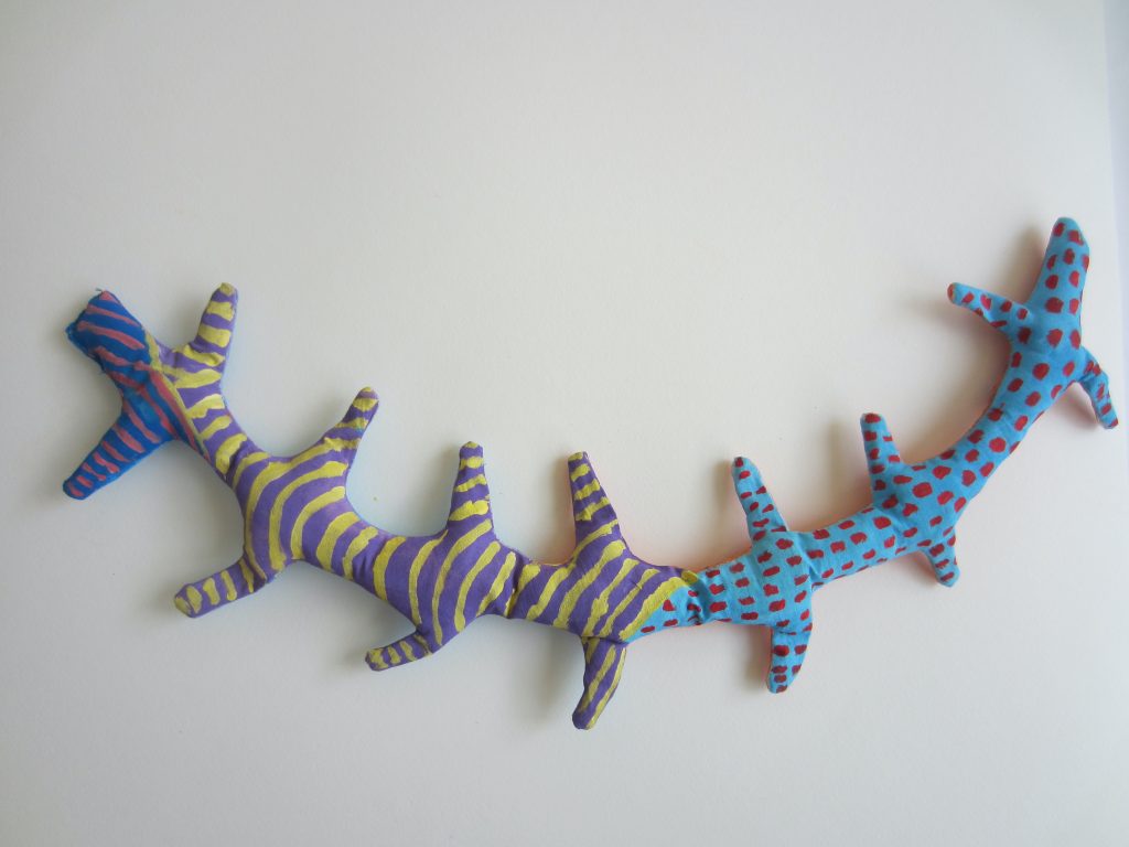 Naast de reeks visportretten werk ik aan een soort knuffels in de vorm van vissen. Maar ook maak ik graten die eveneens littekens kunnen zijn – dit is een kleine link naar het begin waar ik schreef dat ik niet wilde uitschrijven over de gehavende rechterborsten van de geportretteerden –