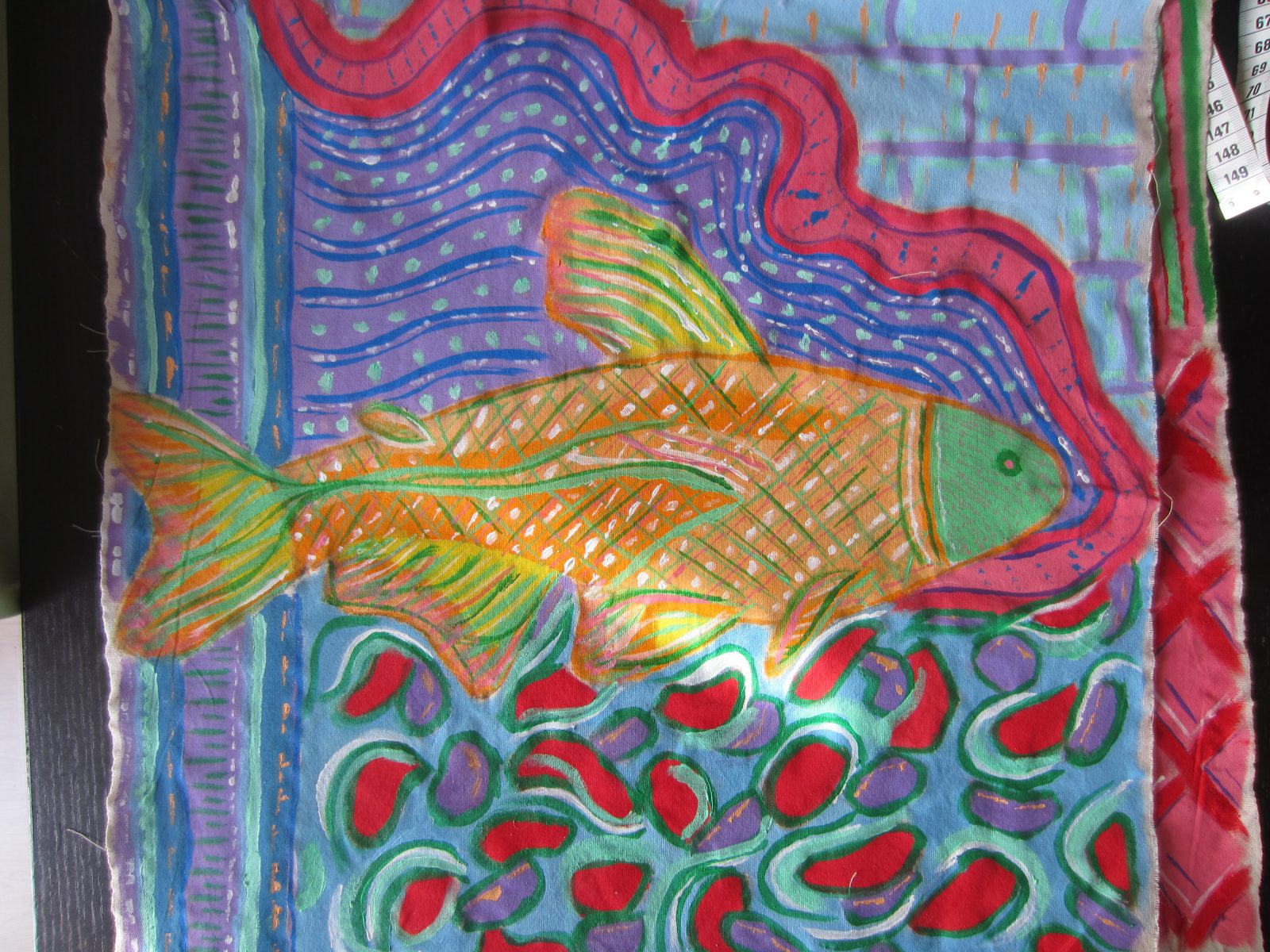 In veel kunst is de vis letterlijk een vis – althans zo interpreteer ik het – zoals de vrouw die vrolijke kapstokjes maakt in de vorm van een vis – en soms staat ze voor iets groters, zoals de vissen in die eeuwen die naar overvloed verwijzen.
