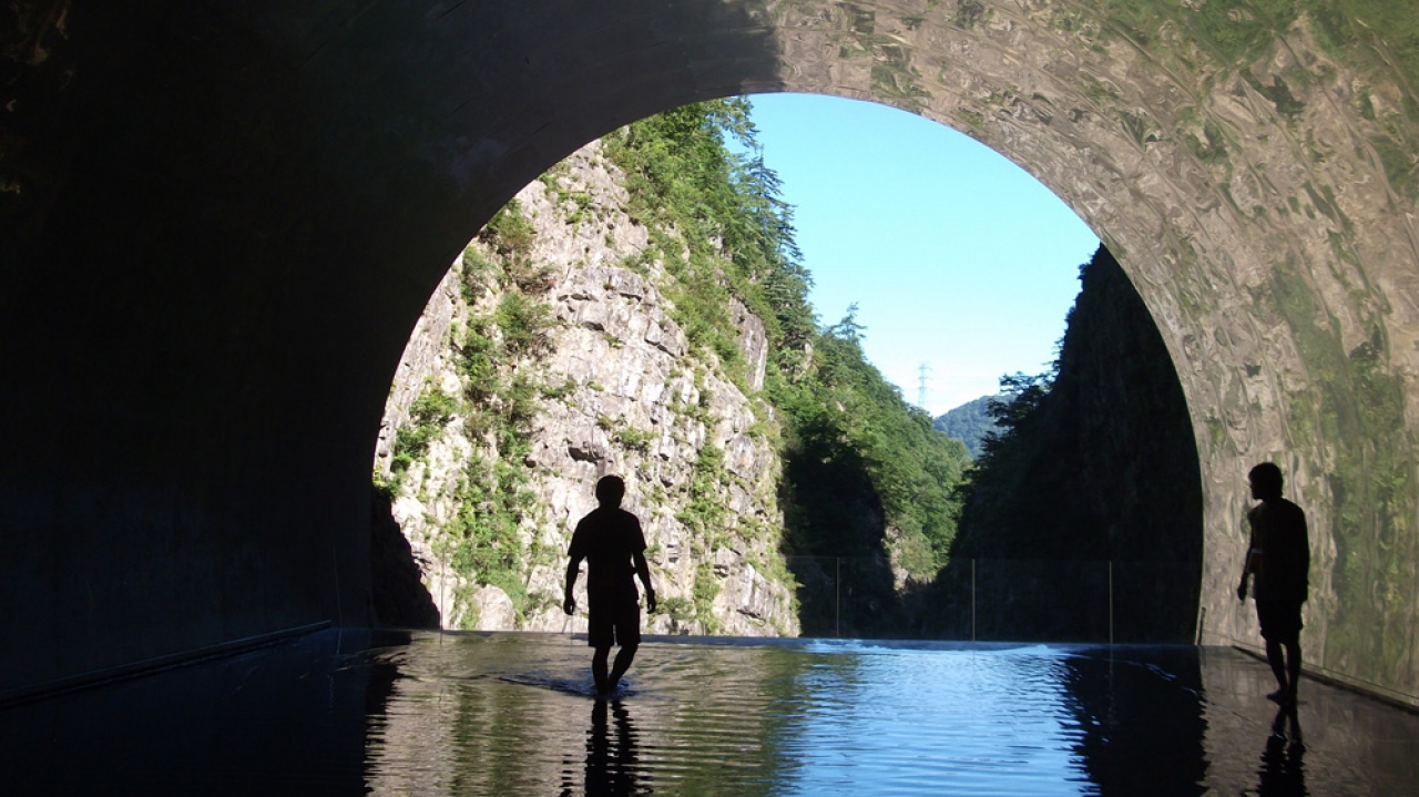 Het hele gebeuren concentreert zich rond het stadje Tōkamachi met al haar omliggende dorpen en gemeenschappen. Het gebied is uitgestrekt, maar mij is verteld dat je met de trein en elektrische huurfiets prima op weg kunt. Toch is voor het bekijken van een aantal werken een auto noodzakelijk. Zo ook het nieuwe werk Light Cave van Ma Yansong / MAD Architects dat groots wordt uitgemeten en aangekondigd als belangrijke nieuwe aanwinst voor deze editie. De installatie bestaat uit een infinity-pool met direct daar achter een uitzicht op een sereen natuurschoon: een knap staaltje van miljoenen jaren tektonische werking compleet met helder bergstroompje. Een spektakelstuk als dit moet tot in de puntjes kloppen. Maar het verijdelde uitkijkpunt lijkt niet af. De tunnel bestaat al langere tijd en is met opzichtig en zelfs lomp bouwmateriaal opgelapt voor haar nieuwe doel. Na de verwennerij van de over de top verzorgde Seto kunsteilanden eerder in mijn reis weet ik hoe imposant de combinatie natuur met een schoon werk kan zijn. Schoon, in de Japanse betekenis [kirei] van tegelijk mooi om te zien en zuiver, rein gemaakt. Voor mij is dit werk dat niet.