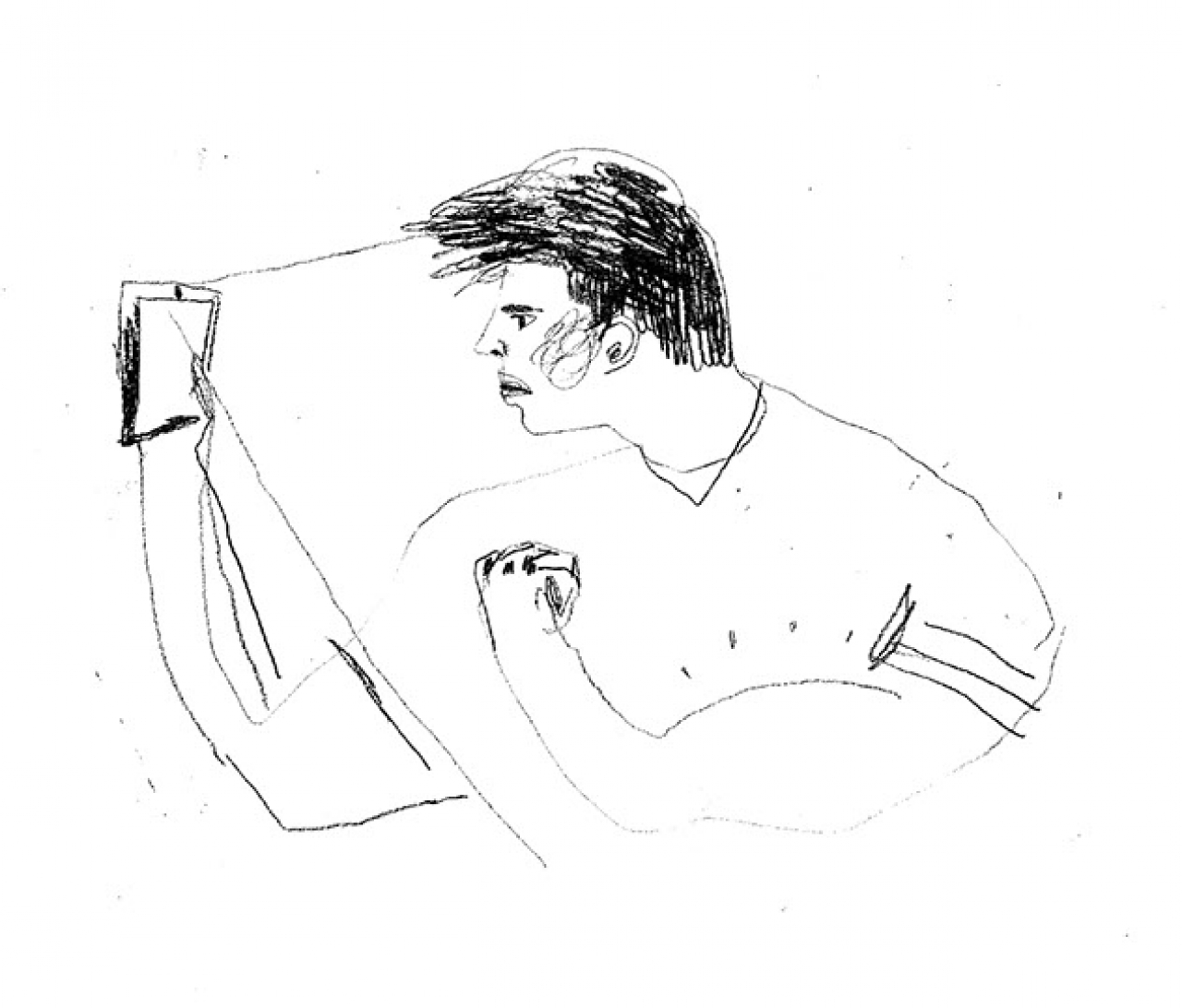 Jesse Strikwerda (1991) is de vierde deelnemer aan de tentoonstelling. Hij is een illustrator wat in de wereld van de beeldende kunst meteen een ding is, want een erger verwijt dat zijn werk illustratief is kun je een beeldend kunstenaar nauwelijks maken. Of je moet natuurlijk een zelfbewuste illustrator zijn en daarmee je kunstenaarschap praktiseren. Jesse Strikwerda heeft een onmiddellijk herkenbaar handschrift waarmee hij de tijd waarin hij leeft becommentarieert. Hij tekent gevarieerd en vrij explosief alsof hij tijdens het tekenen geen plan volgt maar voortdurend improviseert, impulsen volgend die hem worden aangereikt en die uit hem zelf voortkomen. Hij bespeelt zijn materiaal als een instrument. Waar in de huidige tijd iedereen zich verliest in zijn selfie, laat Jesse Strikwerda zelfbeelden zien, portretten van gedragingen die hij ons gretig en grafisch voorspiegelt. Veel van zijn tekeningen vormen een soort rondedans waarin alles om elkaar heen draait. Hij bekijkt daardoor het leven als een schouwspel nooit van één kant, maar verandert voortdurend van perspectief. Door die opzet doet zijn werk denken aan de middeleeuwse weergave van heiligen- en martelarenlevens die als een ‘bande dessinée’ – een opeenvolging van gesepareerde eilandjes – de panelen van altaarstukken verlevendigden.