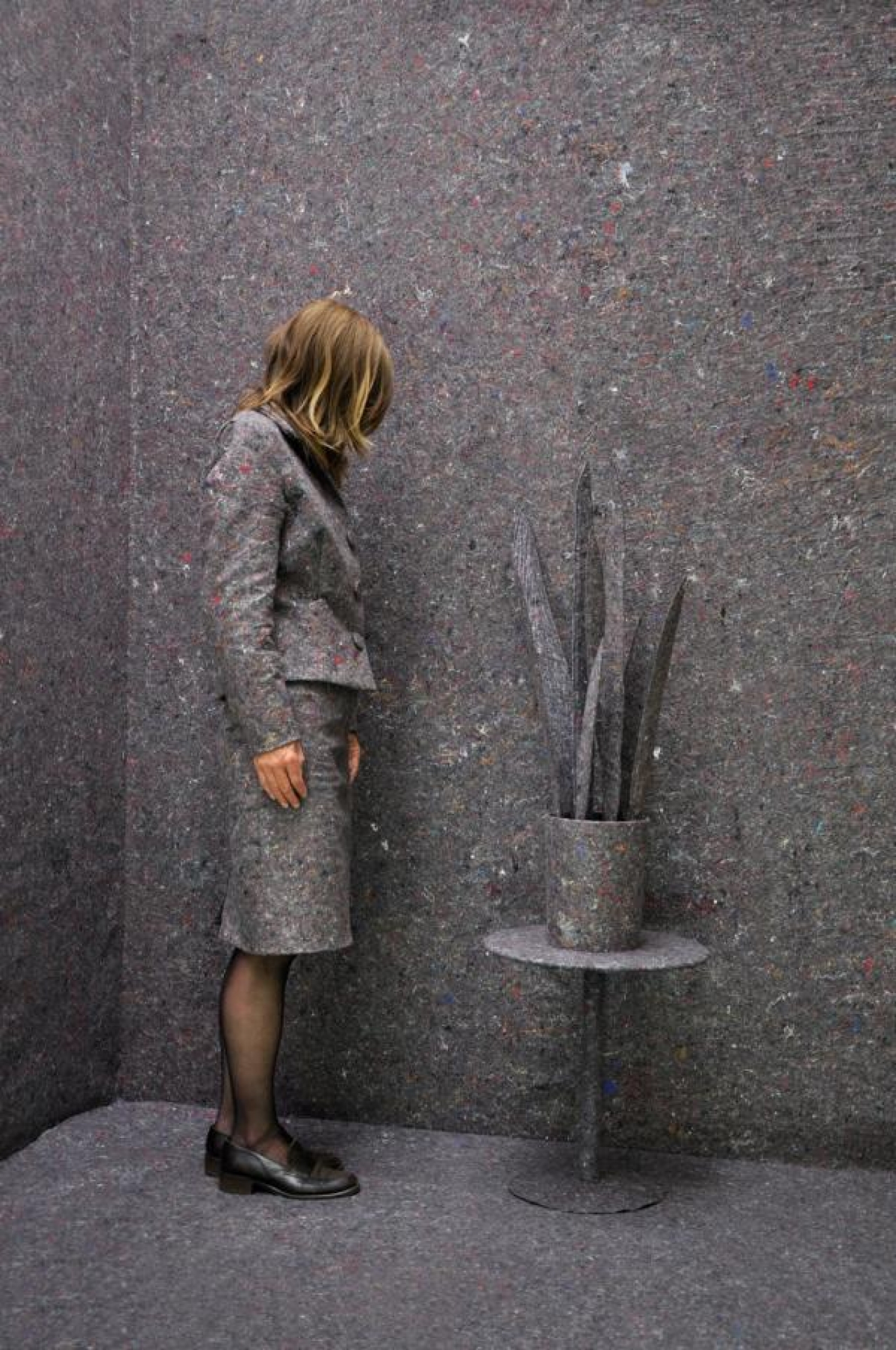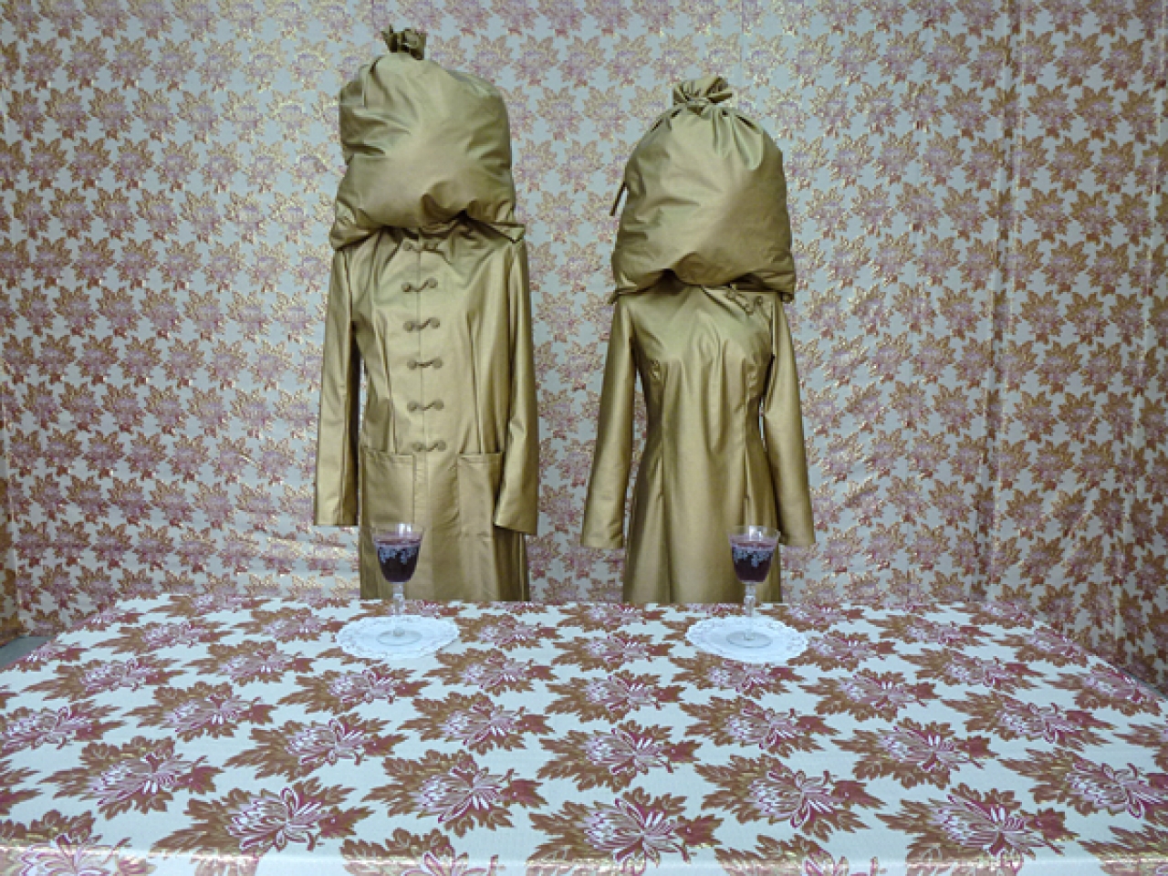 Tijdens haar opleiding aan de Nieuwe Akademie in Utrecht kreeg Marian Mijnhardt les van onder anderen Guda Koster (1957). Ze heeft haar uitgenodigd aan deze tentoonstelling mee te doen. Bij Guda Koster gebeurt in feite het omgekeerde als bij Marian Mijnhardt: hoe ongewoner de voorstelling die ze presenteert, des te aannemelijk is de betekenis ervan. Ze dringt met haar objectmatige mensbeelden direct door tot ons voorstellingsvermogen van het onvoorstelbare. Haar beelden zijn in hun gedaante uitzonderlijk, maar zo precies uitgedost dat ze volmaakt samen vallen met zichzelf. Ze maakt haar beelden meestal voor specifieke situaties en ontleent de gebruikte materialen, vooral textiele stoffen, aan de plaatselijke dracht of historische kostuums. Het eigenaardige aan haar werk is dat de vanzelfsprekendheid ervan wordt bevorderd door de wezensvreemde combinatie van mens en levenloos ding. Ze trekt als het ware een wolk een broek aan, zoals de Russische dichter Vladimir Majakovski dat ooit deed. Ook bij haar zien we weer die lichtvoetige en daardoor zo effectieve maatschappijkritiek. In haar beelden kijken we als geen ander naar onszelf en al weten we niet wat we meemaken met een doos op ons hoofd of een modieuze kanten hondenkraag om onze nek, we staan erbij en kijken ernaar.