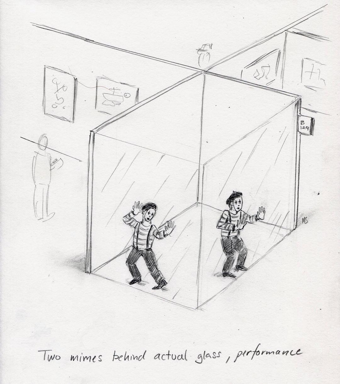 - Touching the Walls with Both Hands Simultaneously, Rebecca Horn