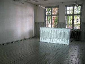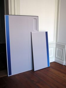 Latere werken zoeken het contrast met de fysieke werkelijkheid: langgerekte scrollbalken zoals we die kennen onder of aan de zijkant van een browser, geprojecteerd op een houten frame. Of ornamenten in houtwerk op de muur, die door hun vlakverdeling lijken op meerdere geopende browserschermen achter elkaar. Maar soms is het ook een ode aan de specifieke esthetiek van technieken uit de digitale wereld: Jan Robert manipuleerde de JPEG-compressie – die het mogelijk maakt dat we afbeeldingen op internet in redelijke kwaliteit zien en toch snel kunnen laden – op zo’n manier dat random landschapsafbeeldingen op schitterende manier gerasterd en opgeblazen worden.