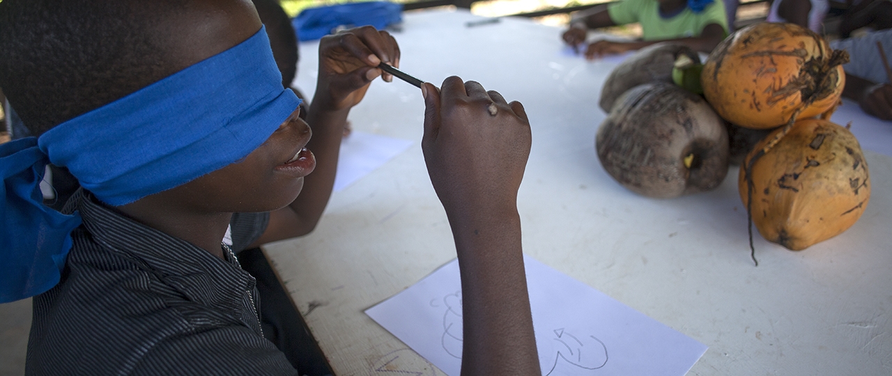 Wat zie je gebeuren in de tekenlessen die gastkunstenaars geven in de dorpen in de omgeving?