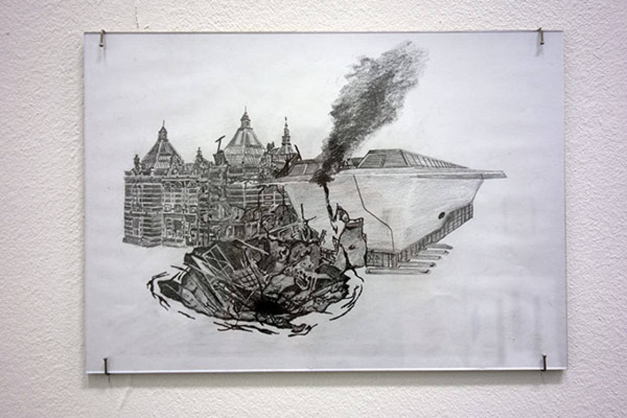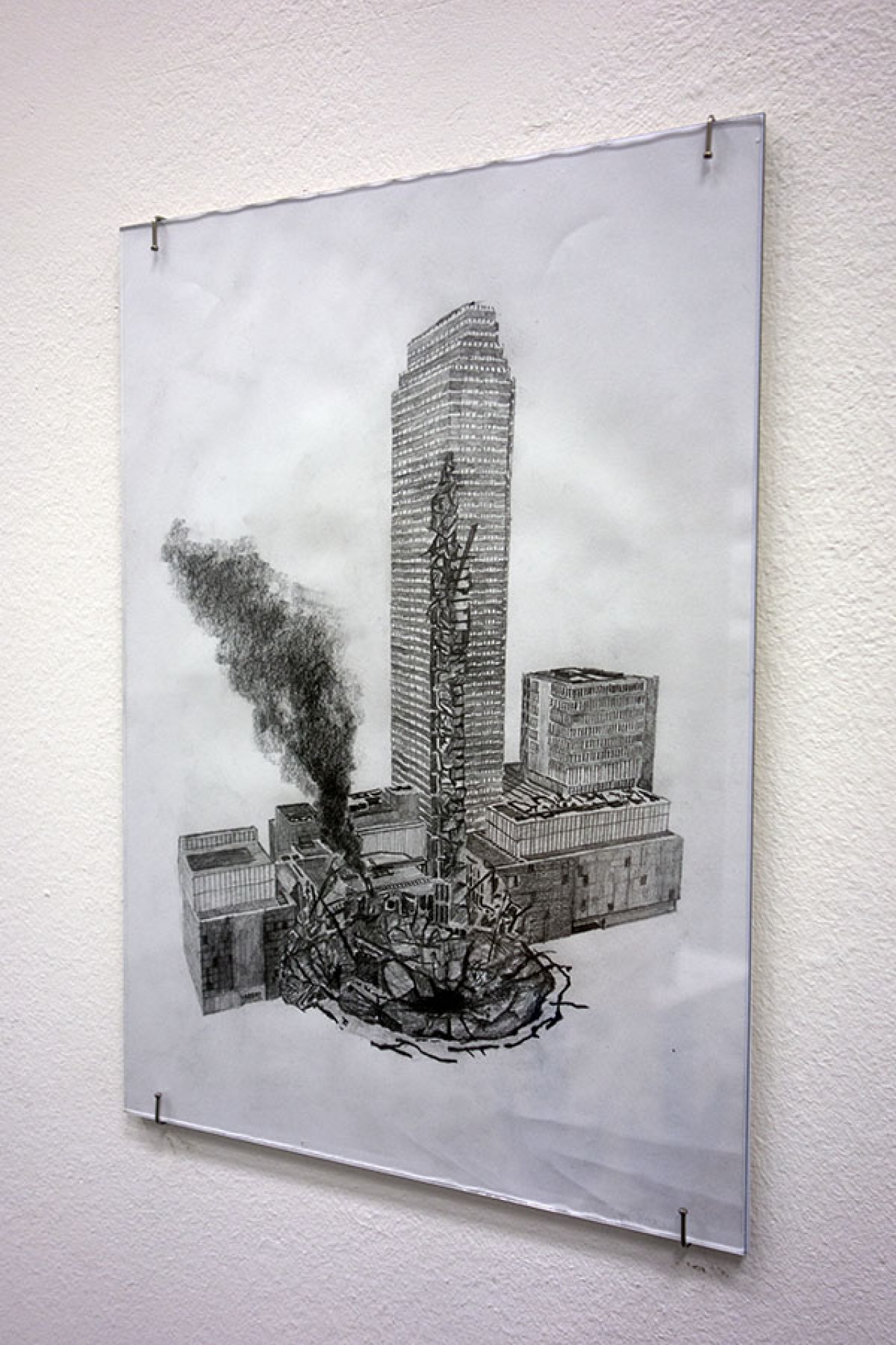 Ook instituten vormen in de kunstwereld volgens Dooley een dicht netwerk. Voor de tentoonstelling in Jolly Joker maakt hij een selectie van verschillende potloodtekeningen uit zijn blocnote. Met potlood tekende hij onder andere het MoMA en het Stedelijk Museum Amsterdam, maar niet als een glorieuze verheerlijking: ze dreigen te verdwijnen in gigantische sinkholes.