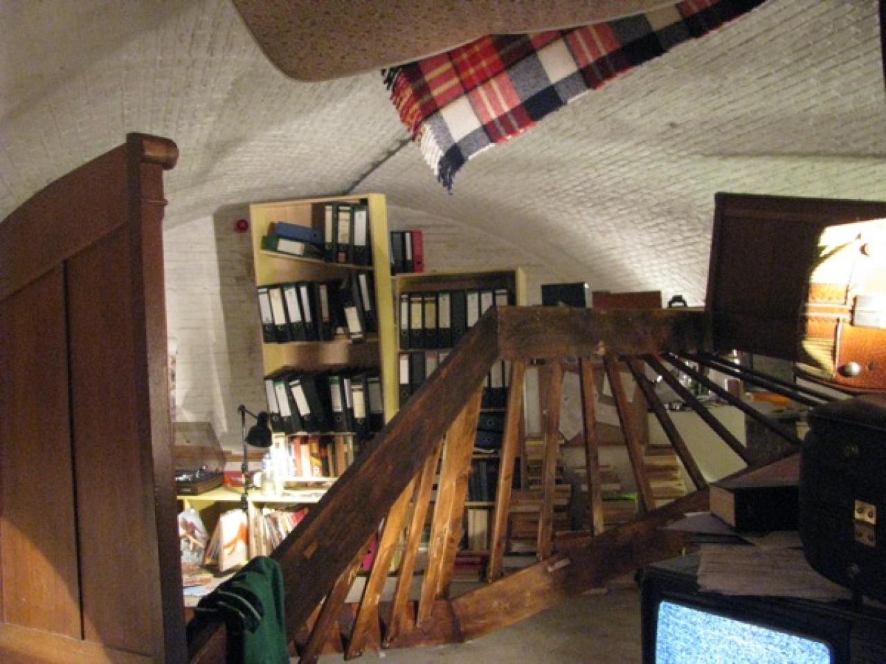 Leonard van Munster tenslotte maakte een indrukwekkende installatie in een ondergrondse bunker. De kamer is op het eerste oog met gewone keuken- en huiskamerspullen ingericht, maar het interieur lijkt ontzet te zijn, met een gigantisch getordeerd bed midden in de ruimte. Zou er een aardbeving hebben plaatsgevonden of is er een wervelwind door de kamer gegaan? Het matras hangt namelijk aan het plafond, stapels boeken zijn omgevallen, kastlaadjes staan open. Alles staat schots en scheef, of is op een hoop gevallen. Het werk heet “Een verstilde gedachte” en geeft de chaos weer die in je hoofd kan ontstaan.