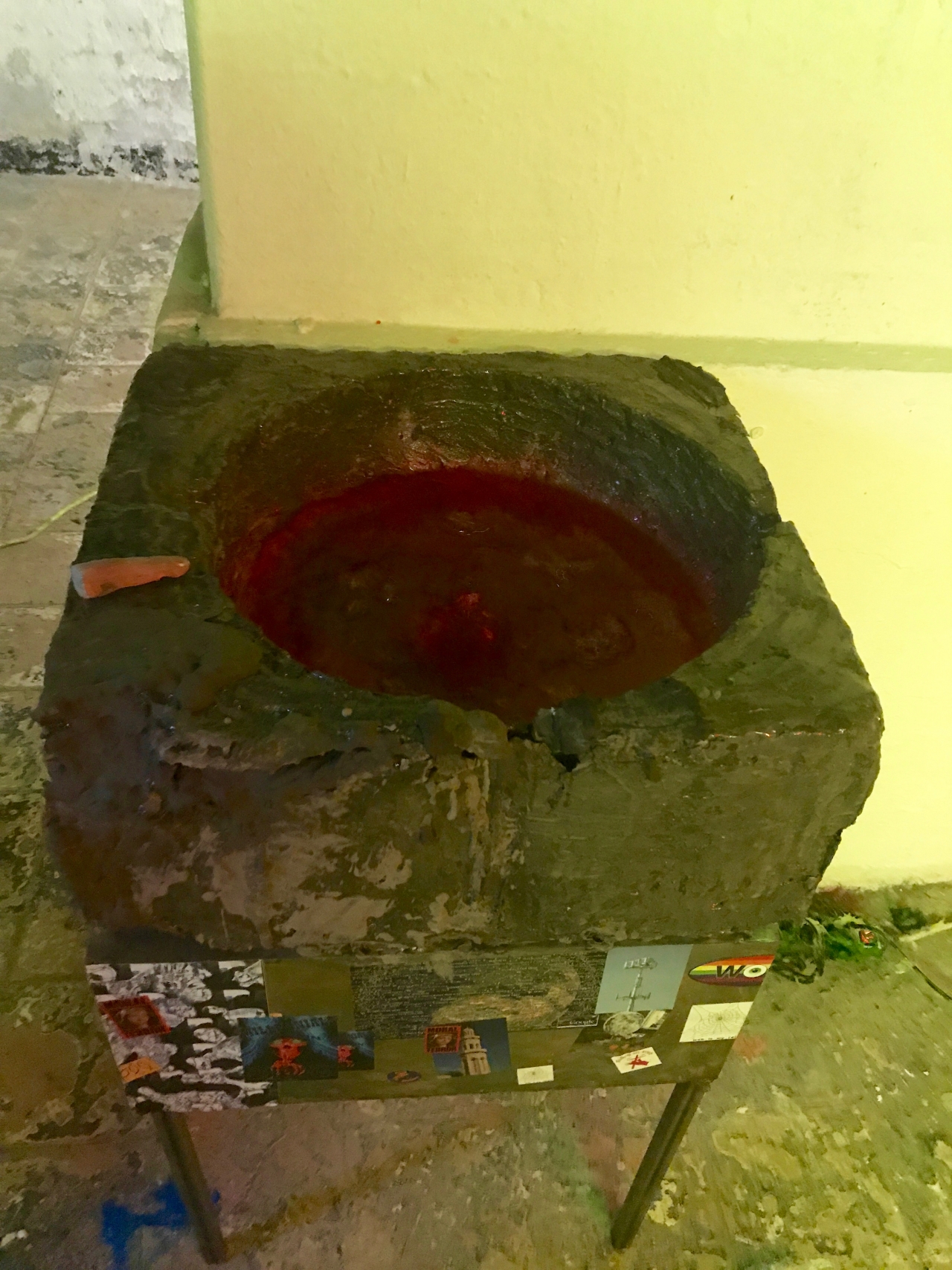 Een derde presentatie die in het geheel opvalt vanwege de radicaliteit ervan is de installatie van Thijs Jaeger, die op een kleine binnenplaats een antenne heeft geïnstalleerd die als zender en ontvanger dienst doet om beelden met een religieuze ontvankelijkheid door te geven. De kabels van de antenne leiden naar een ondergronds verblijf, waarin een aantal fonteintjes te vinden zijn die van energie worden voorzien vanuit een vrieskistgrote kast waarin een donkere hartslag dreunt. Eén van die fonteintjes is een bekken dat aan een wijwatervat doet denken waarin een bloedrode vloeistof opborrelt. Thijs Jaeger vangt beelden op uit de virtualiteit die neerslaan in relieken en geassocieerd worden met vroegchristelijke catacomben in een ruimte die overspoelt lijkt met het groene ectoplasmaslijm uit de film Ghostbusters.