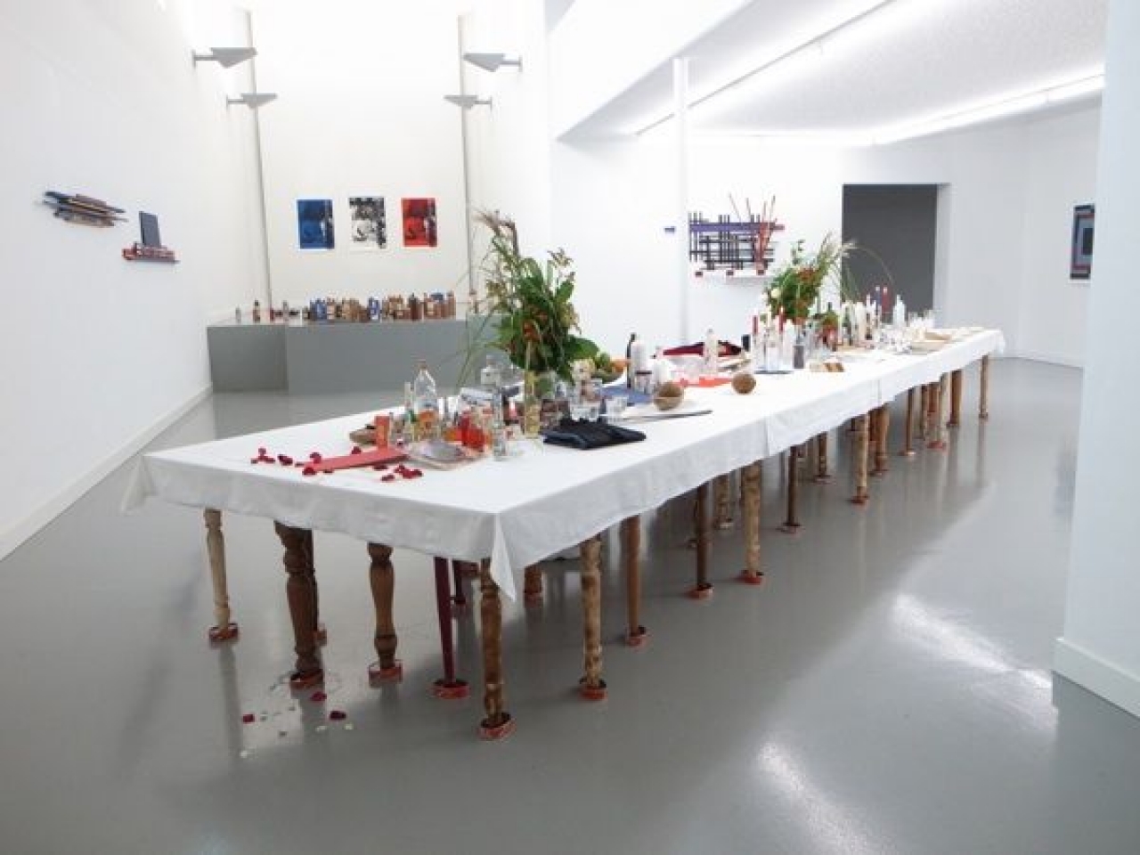 Jungerman richt deze tafel als een rituele handeling samen in met de Winti priesteres Nana Efua die de tafel tevens inzegent.