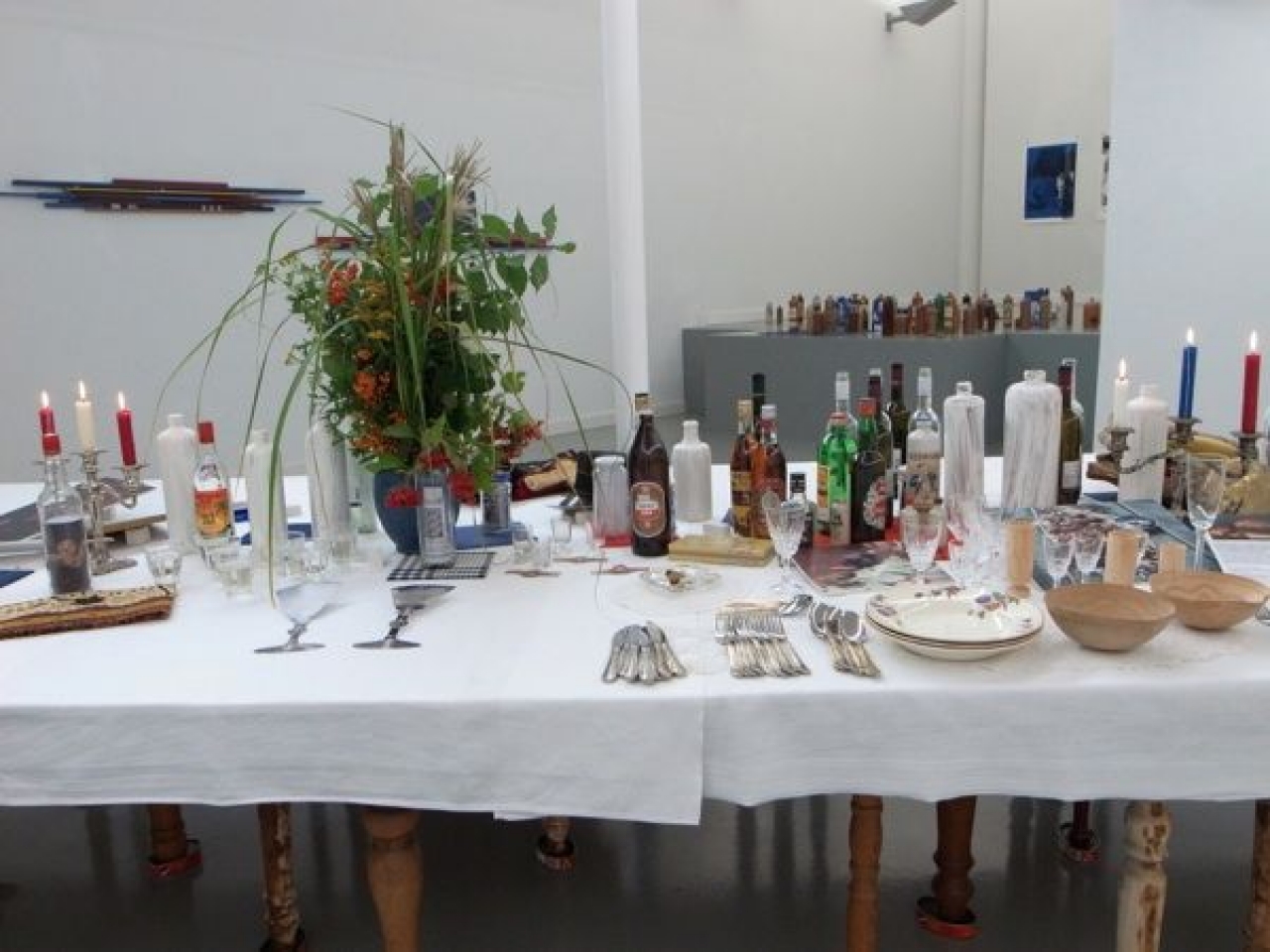Centraal in de tentoonstelling ‘KABRA. Descendants Exchange’ van Remy Jungerman staat een symbolisch gedekte tafel. Op een groot wit tafelkleed zijn een soort eilanden gecreëerd van verschillende verzamelingen van attributen. Als aan ‘The Table of Brotherhood’ van Martin Luther King brengt Jungerman de droom van verbondenheid en gezamenlijkheid tot leven.