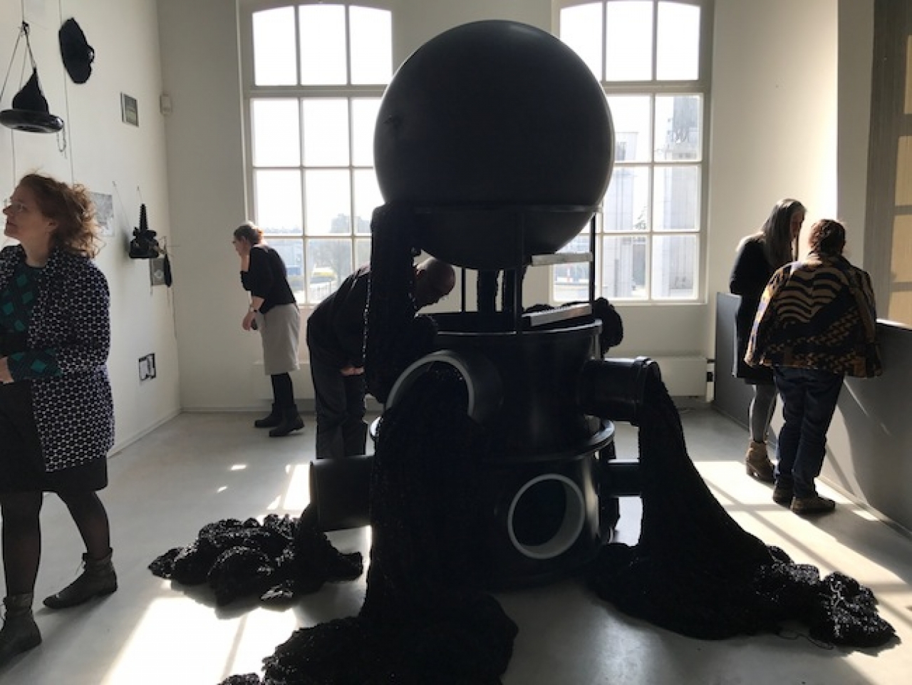 We staan in de Cacaofabriek, in een buitengewoon en onbekend landschap, de kunstenaar heeft het vermogen om zich ergens een voorstelling van te maken en iets onbekends toe te voegen aan het bestaande. Om de ons bekende wereld uit te breiden.