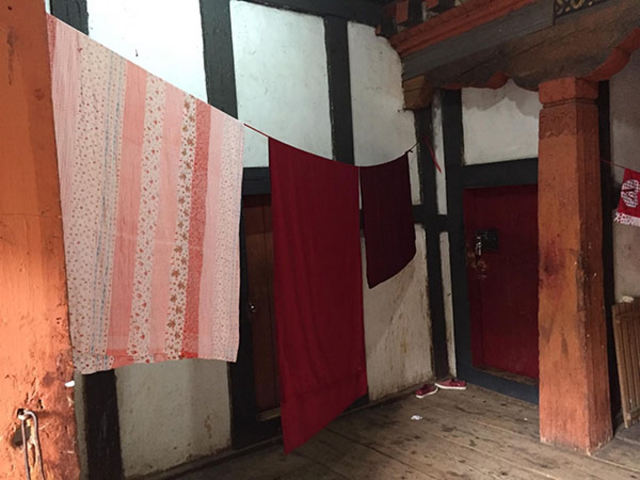 In 1989 bepaalde de eerste moderne ‘driglam namzhag’ dat de inwoners van Bhutan voortaan de nationale kleding moeten dragen op publieke plekken, scholen, werk, in tempels en bij officiële gelegenheden. ‘Please come in formal dress.’ Toen we per ongeluk de finale van Idols binnenliepen zat iedereen op plastic stoeltjes naar de optredens te kijken, allen gekleed in de traditionele gho en kira (en met het lieve hoofdje van het pasgeboren prinsje Gyalsey als centrale focus op het achterdecor).