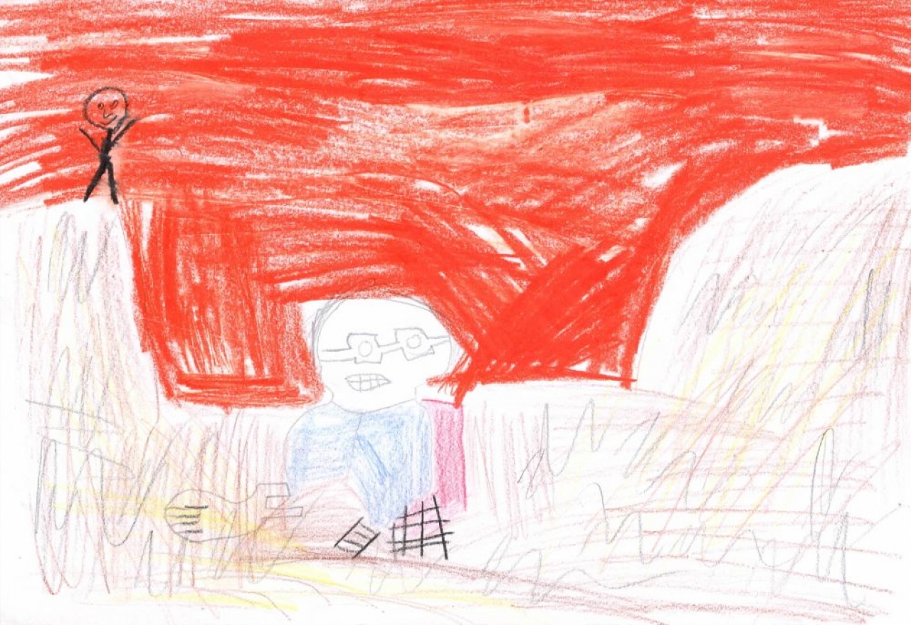 ‘Op het kunstwerk van Melanie Bonajo zie je een oranje lucht en een oma die diep in de troep zit. Het ziet er heel grappig en heel serieus uit. Daardoor blijf je kijken. Ik denk dat die oma ons wil zeggen dat we onze troep op moeten ruimen omdat het anders in de oceaan komt. Ik vind het erg mooi bedacht, om dat zo te vertellen. Ik denk dat die oma de wereld wil redden. Haar boodschap is denk ik dat we samen op moeten ruimen als we ook zo lang als haar willen leven. Mijn complimenten voor degene die dit heeft bedacht en gemaakt. Het zet je echt aan het denken. En tegen die oma wil ik graag zeggen: dapper dat u tussen al die troep durft te zitten. U bent een held!’ – Roël (10)