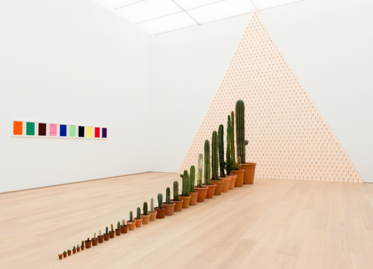 ‘Het kunstwerk van Martin Creed bestaat uit een hele lange rij cactussen. Ze staan van klein naar groot. Ze zitten allemaal in een bloempot. Aan de ene kant zit een witte muur, daar hangen gekleurde blokjes aan. Aan de andere kant is er een soort piramide van WC-rollen gemaakt. Ik denk dat de kunstenaar veel van cactussen houdt. Daarom heb ik het werk ook gekozen. Ik heb zelf ook cactussen. Ik vind het goed dat hij ze van klein naar groot heeft gezet. Ik denk dat hij het kunstwerk heeft gemaakt toen het lente was. Daar worden mensen vrolijk van. En ik denk dat hij ook vrolijk was toen hij het maakte. Misschien ga ik mijn cactussen ook wel op volgorde zetten. Bedank hem maar, voor de tip.’  -Ruben (10)