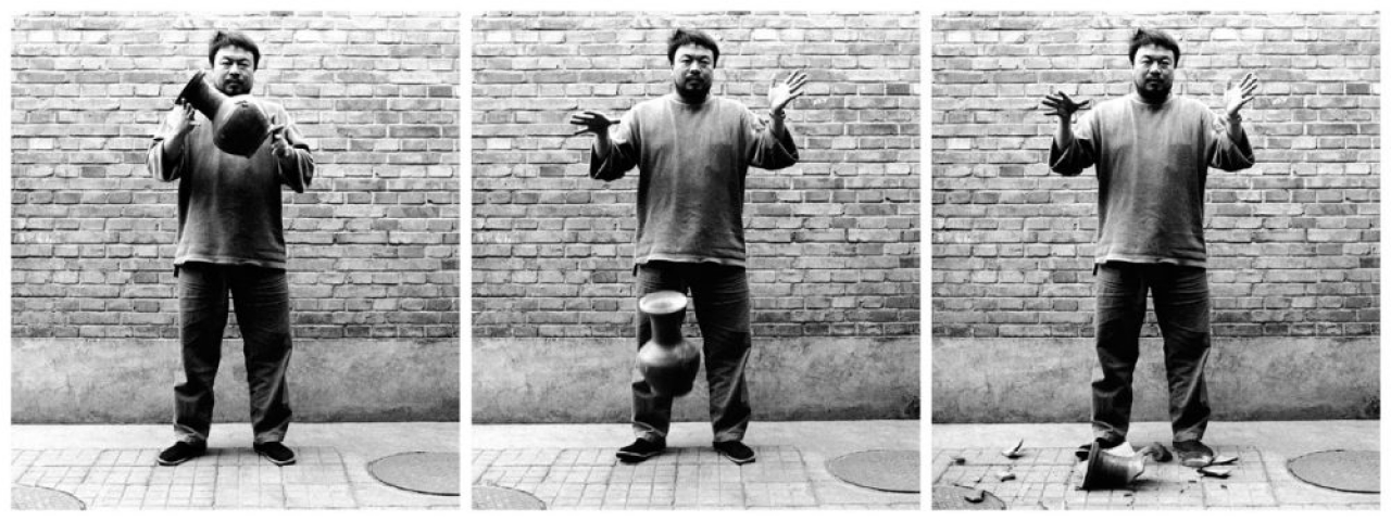 Afbeeldingen: Dropping a Han Dynasty urn – Ai Wei Wei. Tekening door Elia (12)