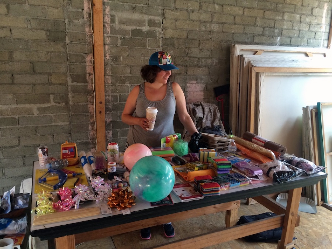 We hebben ingeslagen. Glinsterende strikken, zwarte balonnen, milkshakerietjes in vier kleuren, anti-kras kurkplakkers, miniweefgetouwtjes van doorschijnend plastic, herstellende vochtinbrengende collageen gezichtsmaskers, tien soorten schuursponsjes, glanzende plastic stootbolletjes, gevouwen papieren trappetjes ter opvulling van kadomanden, een rol anti-slib mat in bejaardenhuisbruin, een toverstaf die opgloeit in het donker, en nog veel meer. Dezelfde wegwerpluxe die je in Nederland bij de Action kan kopen. Made in Taiwan. Made in Korea. Maar vooral Made in China.