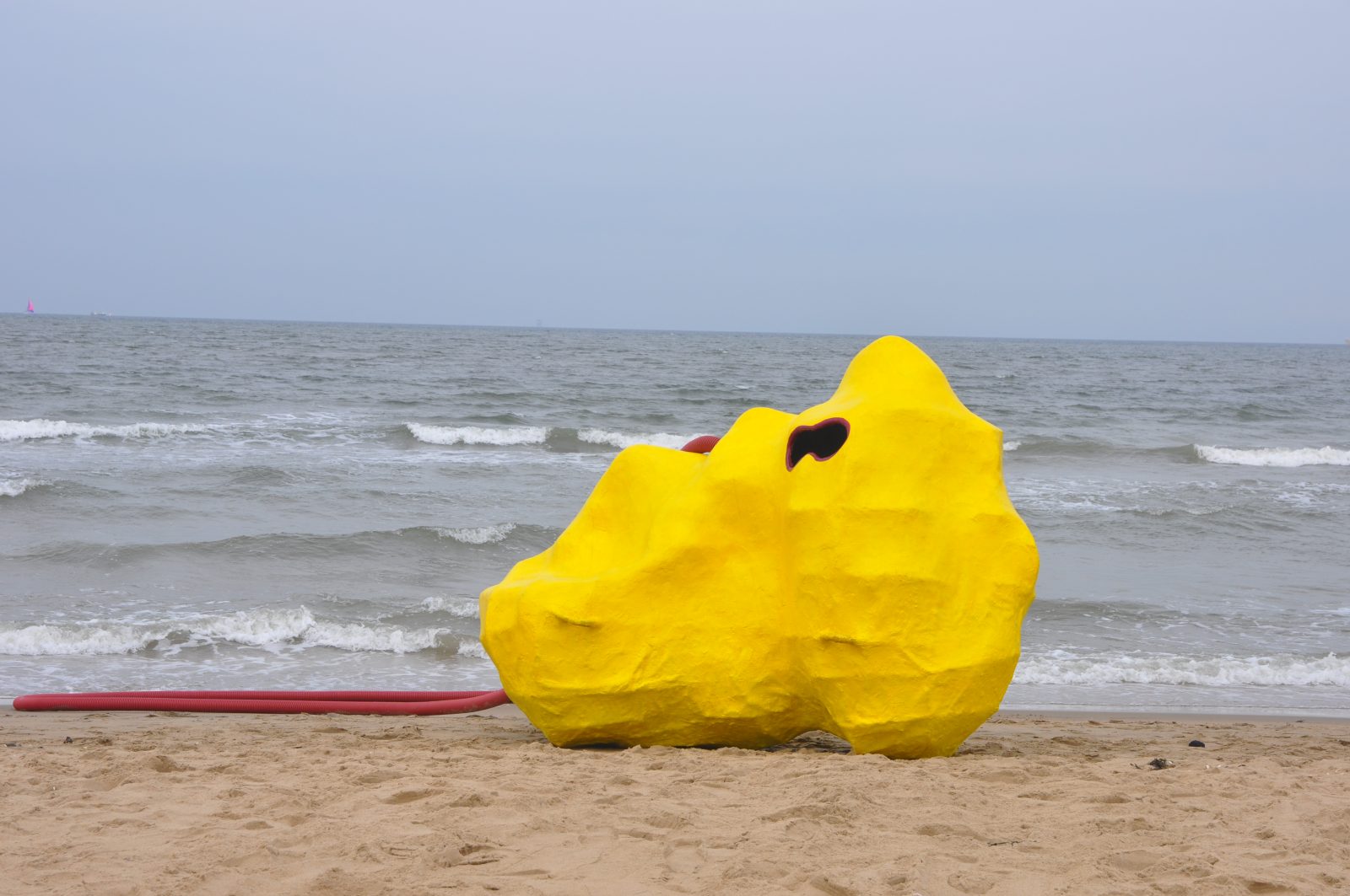 Ik loop verder naar de rand van het dorp, de dijk op, uitkijkend over het havengebied. De zon hangt laag waardoor de contouren van de haven zacht omlijnd worden met een gouden gloed. In het water dobbert een meerkoet. Het is een moment waarop alles rust en vredig oogt, in harmonie. Een illusie die snel doorprikt wordt wanneer ik met mijn neus bij een rechthoekig kastje met een gaatje erin. Een penetrante benzinelucht stroomt mijn neus binnen en onder het gaatje staat de volgende prikkelende tekst: ‘In benzine ruiken we de resten van planten; zeeplanten uit het Mesozoïcum. Om te zeggen dat het een roep om hulp is gaat misschien wat ver maar het is op zijn minst interessant om te beseffen dat wanneer we tanken, we met de neus contact maken met planten die 180 miljoen jaar geleden leefden’.