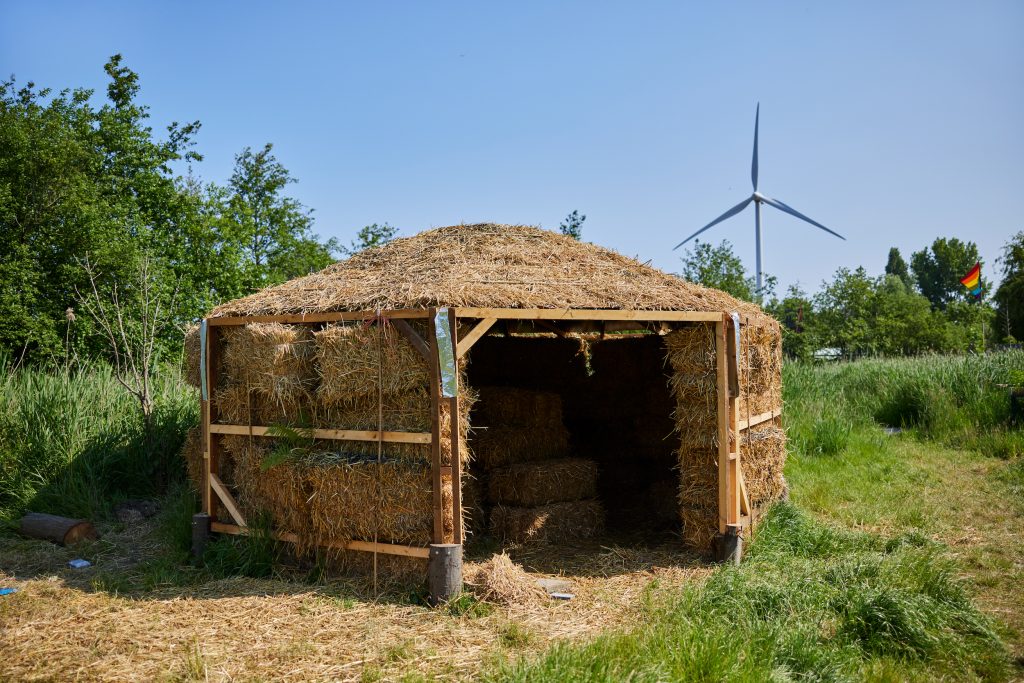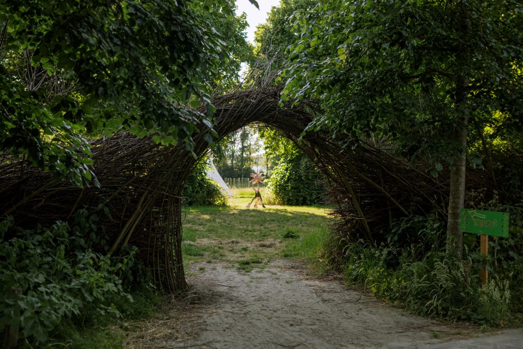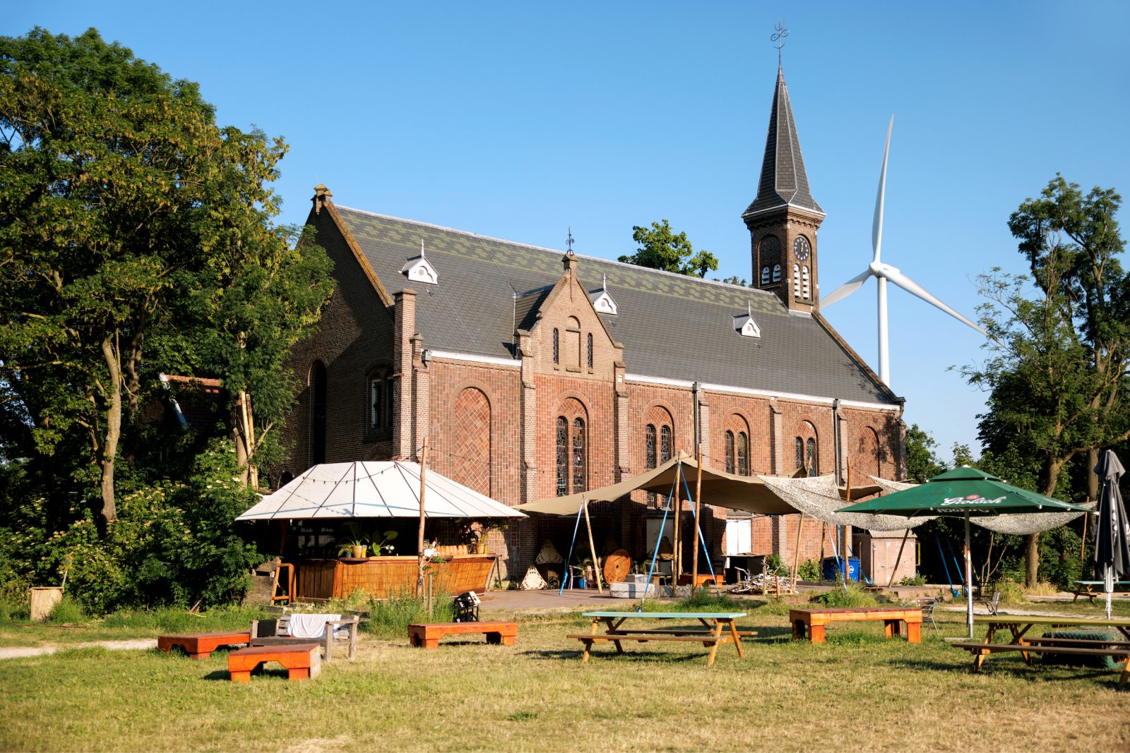 Vandaag is daar echter weinig van te merken. Het is rustig, gemoedelijk. In de verte wat spelende kinderstemmen, voor mij een oude kerk omringd door gras, bomen en houten bankjes. Dit is het zenuwcentrum van Ruigoord, mijn vertrekpunt voor ‘De Oase van verwondering’, een groene kunstroute ter ere van het 50-jarige bestaan van het dorp. Verspreidt over het gehele terrein zijn dertig projecten te zien ‘vol oeroude, pionierende en groene (eigen-) wijsheden’ die uiting geven aan de zoektocht naar een andere verhouding tot de natuur.