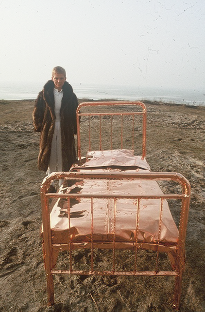 Op een dag stond Beuys in de deuropening. Ik zei tegen hem: ‘Dit vind ik zó mooi.’ Waarop Beuys naar me toe liep, zijn arm om me heen sloeg en zei: ‘Kom mee, we gaan kijken naar de film van mijn Aktion Eurasienstab hier vlakbij. Die film werd vertoond in een ruimte die Anny de Decker (van de legendarische Antwerpse avantgarde-galerie Wide White Space – LtB) had afgehuurd en was net zo indringend als die grote zwarte balken, die vielen.