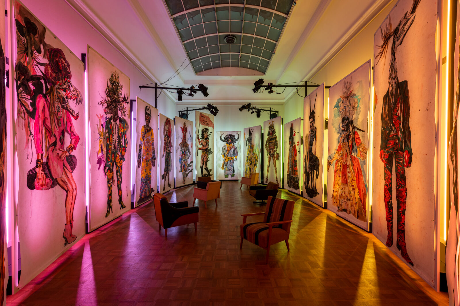 Deze week is Charlotte Schleiffert te gast bij Kunst is Lang. Charlotte tekent en schildert al ruim 30 jaar een expressief oeuvre bij elkaar. Het meest bekend zijn haar figuren van meer dan 3 meter hoog, meestal een combinatie tussen een menselijk onderlijf in modellenpose met daarbovenop een dierenkop of een uitbundig masker.
