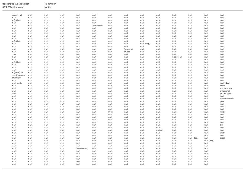 Deze week is Elise ’t Hart te gast bij Kunst is Lang. Elise verzamelt en presenteert geluiden, om ons bewust te maken van hun verhalende kracht en betekenis. Zo richtte ze het Instituut voor Huisgeluid op: een archief van geluiden die binnen de muren van je eigen woning een gevoel van huiselijkheid oproepen. En in een intiem werk vangt ze de kwetsbare nachtelijke ademhaling van haar dochtertje van anderhalve maand, gevolgd door haar totaal veranderde ademhaling wanneer ze anderhalf jaar oud is.