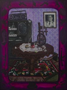 Deze week is Elma Čavčić te gast bij Kunst is Lang. In de schilderijen en collages van Elma is de Bosnische burgeroorlog uit jaren ‘90 altijd aanwezig. Soms op de voorgrond, in de vorm van geweren of silhouetten van soldaten, soms in verhulde, sluimerende vorm op de achtergrond, wanneer je op het eerste gezicht een zorgeloze familiepicknick bij een rivier ziet afgebeeld – totdat je ziet dat de lichamen in het water niet zwemmen maar drijven. Veel taferelen die Elma toont, zijn ontleend aan de fragmentarische herinneringen die haar ouders sporadisch met haar delen. De werken leggen een traumatisch verleden vast, en dienen tegelijkertijd als breekijzer voor nieuwe gesprekken. Zo ook bij de tentoonstelling die Elma samen met Jovana Štulić maakte, een kunstenares uit een Servische familie: vanuit de oorlog bezien de vijand.