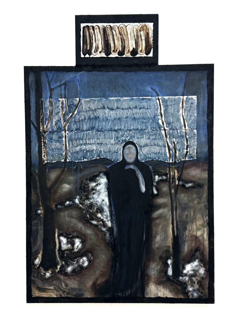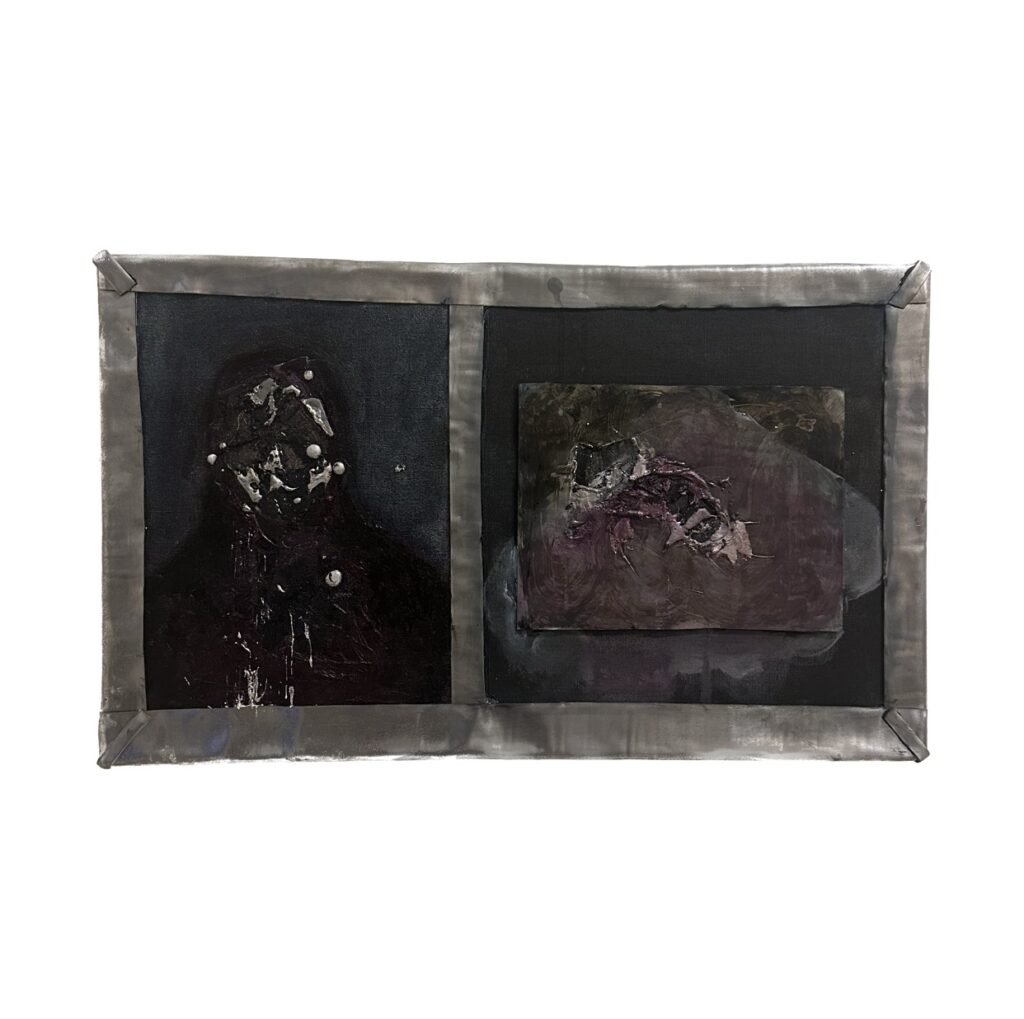 Deze week is Mounir Eddib te gast bij Kunst is Lang. Op zijn schilderkunstige werken zijn sferische landschappen en silhouetten te zien, veelal in donkere kleuren. Door het toevoegen van speciale materialen krijgt Mounirs werk een sculpturale kwaliteit, bijvoorbeeld wanneer hij verf maakt door er schalie of hoogovenslak doorheen te mengen: restproducten van de mijnbouw die in zijn woonplaats Genk in Belgisch Limburg heeft plaatsgevonden. Ook spettert Mounir bijvoorbeeld teer op zijn schilderijen, en geeft hij ze randen en stroken van lood, elementen uit rituelen van de Imazigh-cultuur waar zijn moeder in geworteld is.