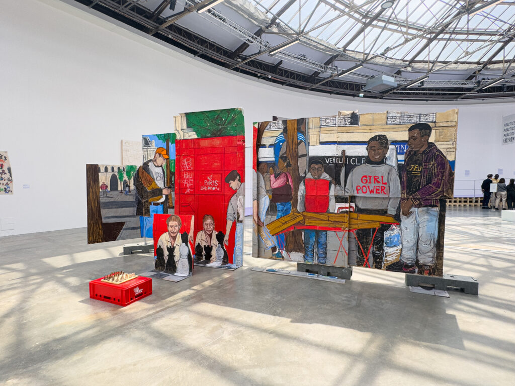 Voor een tentoonstelling in TENT in Rotterdam maakte Pris levensgrote portretten van vrouwen en non-binaire personen. Ze zijn geschilderd op opengescheurde kartonnen dozen, afkomstig uit de toko van haar Indonesische ouders. In begeleidende audio-interviews, te beluisteren op een bank of stoel in de buurt van het portret, praten Pris en de geportretteerde over grote thema’s uit het leven, zoals migratie, de rol van ouders in de opvoeding, constructies van gender en queerness. En voor een tentoonstelling in Palais de Tokyo ving ze het plezier van mensen die elkaar in de openbare ruimte vinden om bijvoorbeeld schaak te spelen. Zo begint haar werk altijd bij het dagelijks leven, om vervolgens tot grotere, onderliggende thema’s als identiteit en community te komen.