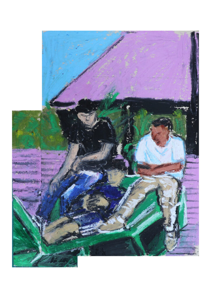 Deze week is Pris Roos te gast bij Kunst is Lang. Ze vangt het dagelijks leven in kleurrijke teken- en schilderstijl. Ze legt graag bepaalde straatbeelden en specifieke winkelpanden vast, maar vaker portretteert ze mensen in de intimiteit van hun alledaagse omgeving: als ze staan te koken, naast hun kat op het vloerkleed zijn neergestreken, of buiten op een geparkeerde scooter zitten.