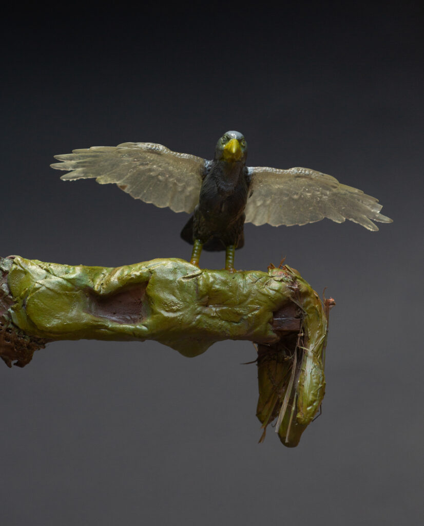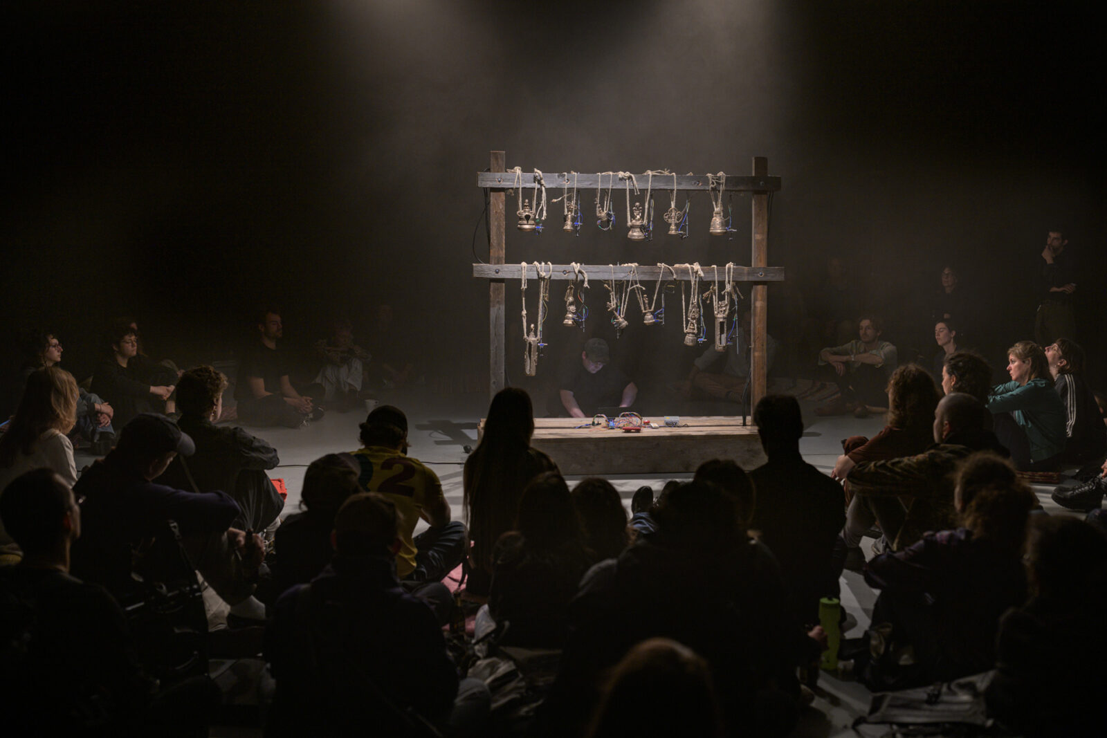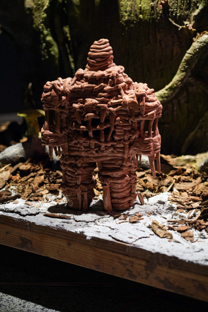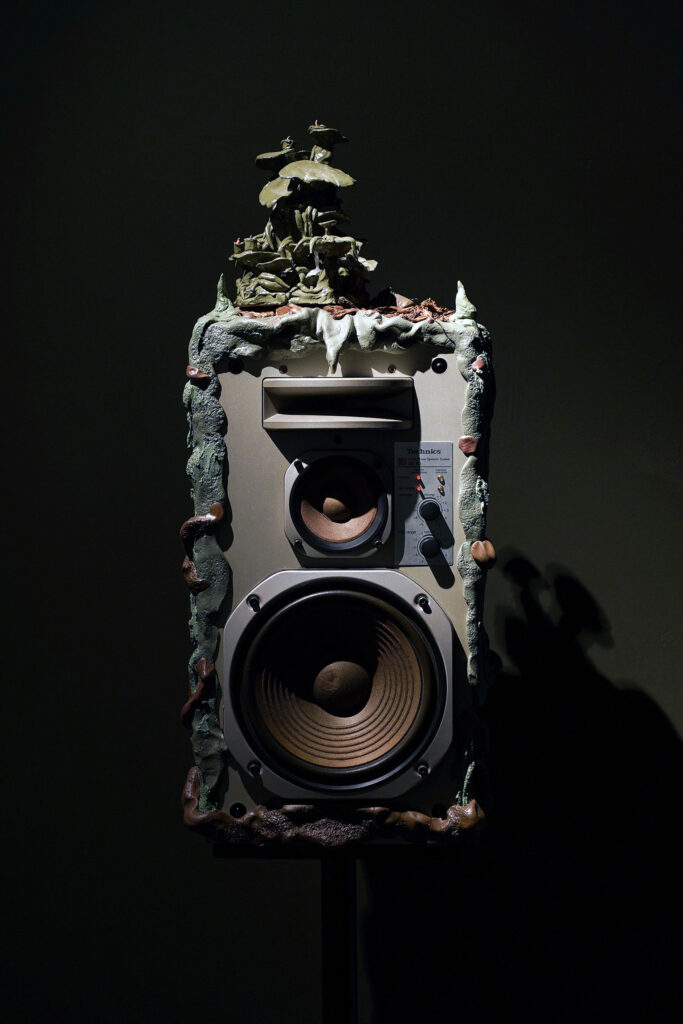 Het gesprek waarin AI-systemen in een videowerk aan een menselijk personage uitleggen hoe ze het lichaam overbodig hebben gemaakt, wordt voorzien van door AI gegenereerde beelden. Mythologische figuren die ons in een Efteling-achtige setting waarschuwen voor de vervlakking van waarheid en originaliteit in ons huidige informatietijdperk. De door Thijs met de hand gegoten klokken zijn zijn poging om iets te ervaren van de manier waarop geesten worden aangeroepen in tempels in Indonesië, het land van zijn familie aan moeders kant.