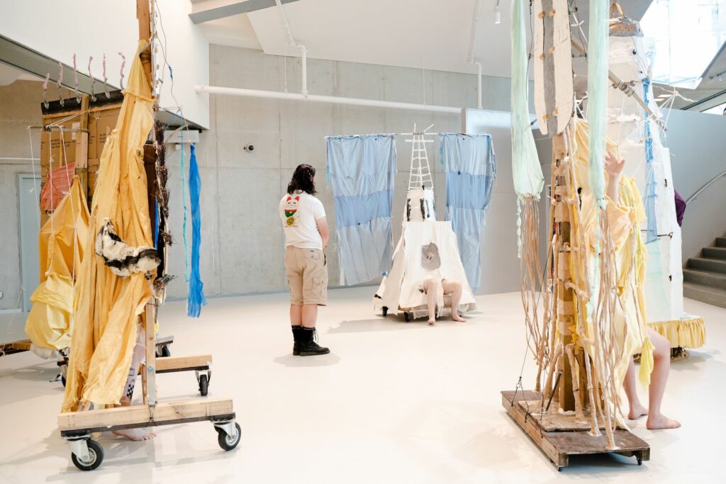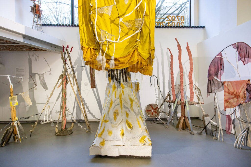 Wessel Verrijt maakt hoge sculpturen, bestaand uit een skelet van hout of gegoten aluminium waaraan gevonden materialen hangen, zoals textiel, karton of netten, maar ook een dakgoot, of objecten van keramiek of cement. Hij wekt zijn creaties tot leven door er performers in te laten kruipen en ze door een tentoonstellingsruimte te laten bewegen, als hybride wezens die tussen mens en materiaal inzitten.