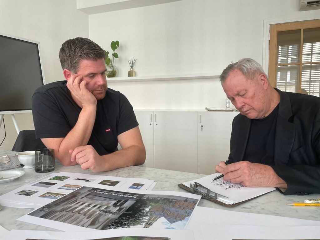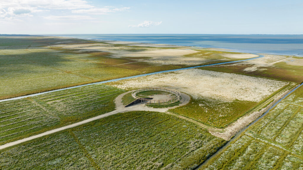 In het café van Op Maarhuizen neemt voorzitter Ruud Reutelingsperger van Sense of Place tegenover mij plaats aan tafel. Het is de tweede keer dat we elkaar ontmoeten, zo’n vier maanden eerder spraken we af in Ruuds woonplaats Rotterdam. Daar vertelde hij over de missie van Sense of Place. De organisatie realiseert kunstwerken in het Waddengebied, dat sinds 2009 UNESCO Werelderfgoed is, om de aandacht voor het gebied te vergroten, de lokale economie een impuls te geven en bovenal om mensen uit te nodigen om te vertragen in het bijzondere landschap. Hij noemde Soundings een van de erfenissen van Joop Mulder, de oprichter van Sense of Place en theaterfestival Oerol die in 2021 plotseling overleed. Hij werkte destijds aan de ontwikkeling van Soundings samen met kunstenaar Robert Wilson.