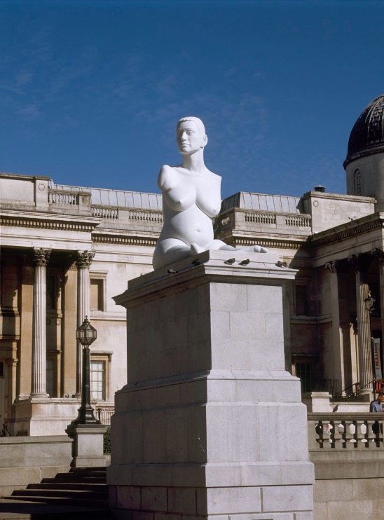 Laat me beginnen met de eerste sculptuur te introduceren: ‘ [ … ] Alison Lapper Pregnant [ is een ] marmeren beeld van meer dan drie meter hoog. Het beeld toont de kunstenaar Alison Lapper naakt en acht maanden zwanger. Achttien maanden (september 2005-april 2007) was ze in Londen te zien op de vierde sokkel van Trafalgar Square. Quinns sculptuur, gepositioneerd in het drukke centrum van Londen naast ruiterstandbeelden van helden van het Britse rijk als Lord Nelson, toont een zelfverzekerde, bijna krijger-achtige vrouw, die lijdt aan focomelie, een aangeboren aandoening waardoor ze werd geboren met verkorte benen en zonder armen of handen. Lapper, uitgehakt als een standbeeld in strak wit Italiaans marmer, is afgebeeld als een aanstaande moeder met een gehandicapt lichaam. Het werk veroorzaakte enige controverse: het beeld zou krachtig en inspirerend zijn, maar ook lelijk en weerzinwekkend. Het roept gevoelens van schaamte op over de naaktheid van de zwangere vrouw maar lokt ook fascinerende reacties uit die ingaan op empowerment voor mensen met een handicap. Alison Lappers eigen kunst heeft tot doel handicap, vrouwelijkheid en moederschap op de kaart van publieke erkenning te plaatsen. De vraag is enkel of deze voorstelling van haar als een gehandicapt, moederlijk subject erin slaagt om conventionele esthetische idealen te destabiliseren en manieren om naar gehandicapte lichamen in het openbaar te kijken te betwisten?’ [6]