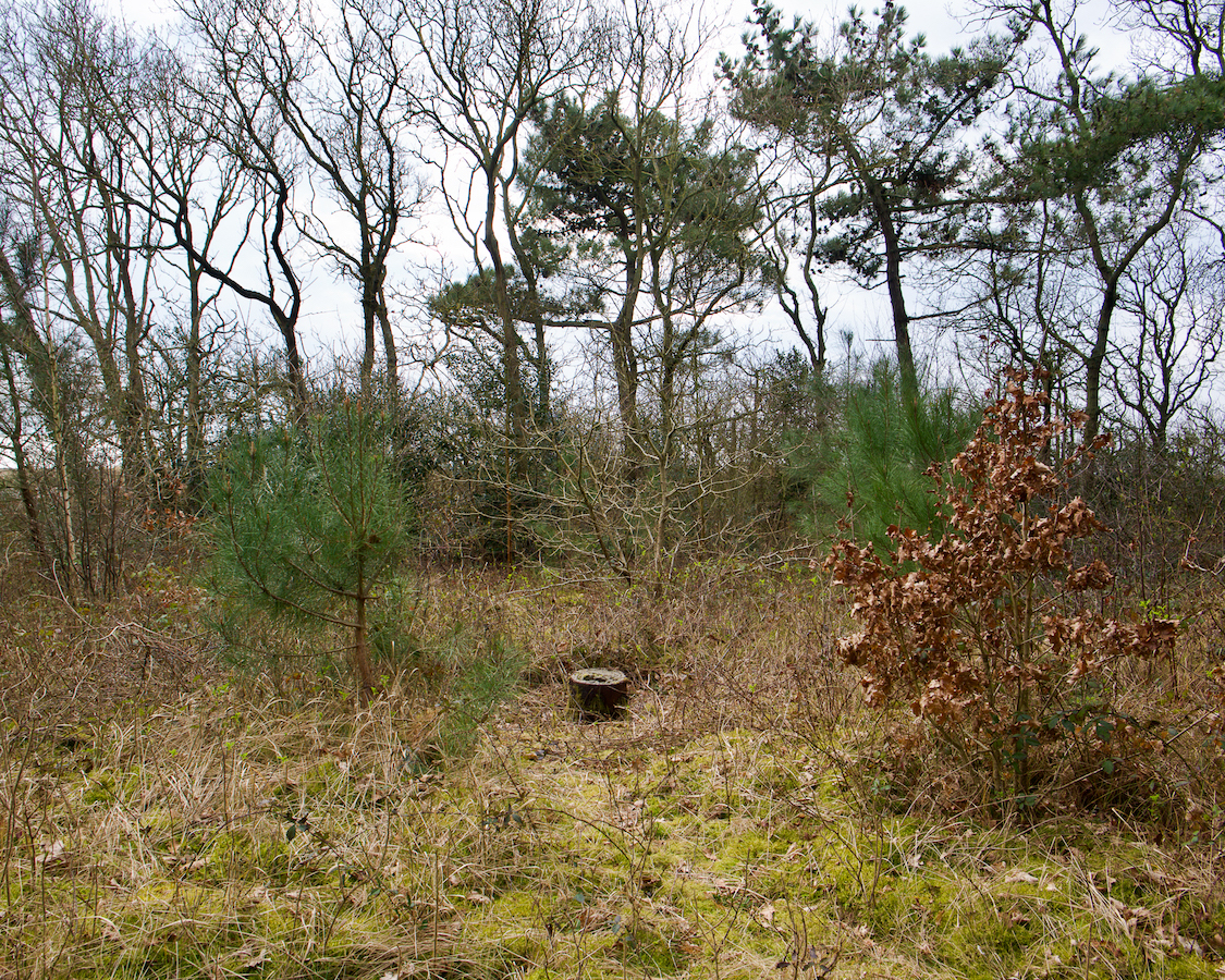 Vlieland was lang slechts een zandplaat. Het eentonige dennenbos heeft daardoor historisch gezien iets vervreemdends, als je bedenkt hoe weids en dynamisch het Waddengebied is. Daarom inspireert de glooiing ons in het bos tussen de Kampweg en het festivalpodium De Open Plek. De kuilen en bulten geven ons het gevoel alsof we in het eiland willen zakken. Onzichtbaar, maar geborgen.
