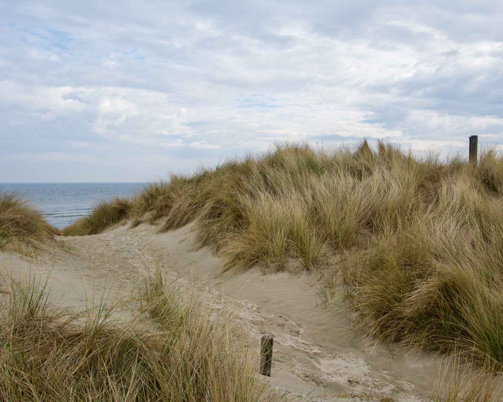 Vanaf de duinovergang kijk je uit over zee richting Terschelling. In je verbeelding markeert de Lutinekaap de positie van de Lutine: het goud moet daar ergens liggen. Tegelijkertijd is er zicht op de ‘oorspronkelijke plek’ waar het baken ooit stond en op de camping – op de zogenaamde goudkust: de mooiste kampeerplekken in het duin. Het uitzicht geeft overzicht, dat maakt de plek bijzonder.