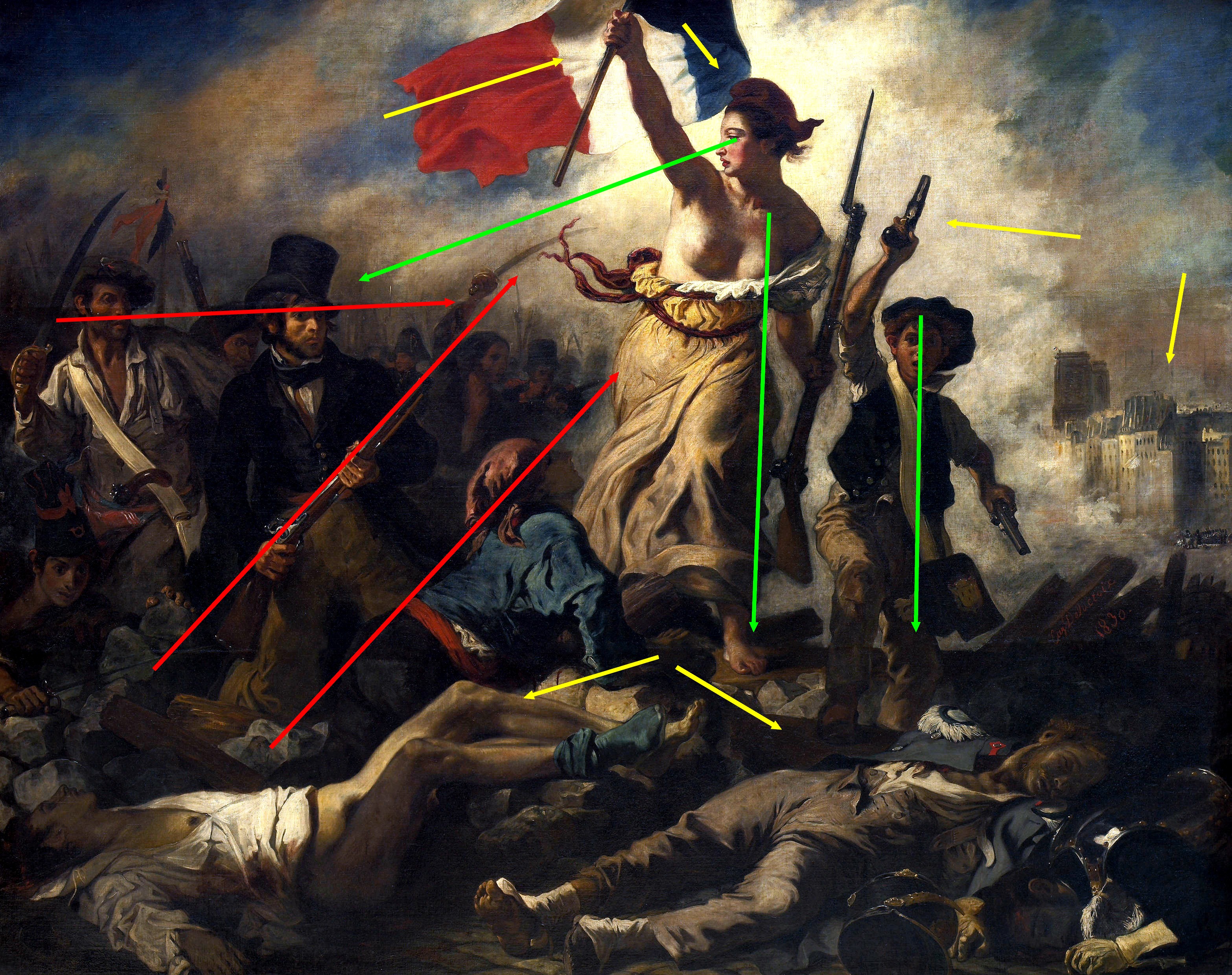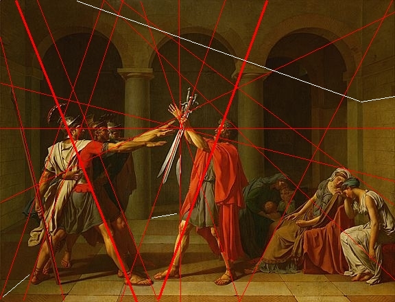 Painting masterpieces have this mythic aura that the viewer tries to become part of, activating intuitively their senses and ratio. Last year, in the context of a commission for a private collector who had asked me to work with La Liberté Guidant le peuple (Delacroix) as a reference, I encountered in my research process an incredible amount of images proposing a rational understanding of a masterpiece. Renaissance paintings quantified in percentages; a love-hate story for the art lovers and the artists themselves. As I started collecting these de- and recompositions, I developed a fascination for the phenomenon. Where does this wide spread maniacal tendency to decode the powerful signs organised on a canvas come from? Which was first: myth or ratio? Meanwhile, iconical paintings are reborn to an endless potential of apparitions, procuring me a serious joy.