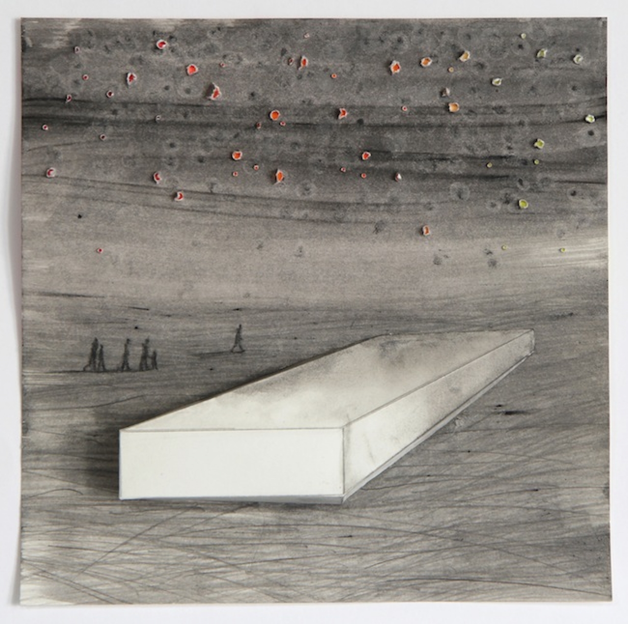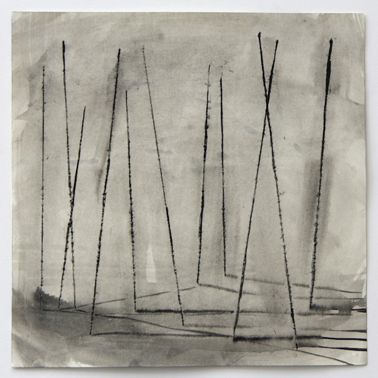 De tekeningen van Lenneke van der Goot (1979) bestaan uit een opeenvolging van omtrekkende bewegingen om de kijker te benaderen. Ze sluipt ongezien op je af om haar tanden in je hals te zetten als je er het minst op verdacht bent. Ze laat niet meer los en bijt stevig door. Ze is een weerwolf die niet alleen bij volle maan toeslaat. De aard van haar werk is een ongemakkelijk combinatie van een natuurlijk talent en complexe rationele overwegingen. Je ziet landschappelijke en urbane, realistische en abstracte componenten in elkaar verstrikt raken. Er is een dierlijke gesteldheid in het werk die tegelijkertijd ontroerend en bedreigend is, naast een bijna rekenkundig aandoend patroon dat compositorisch het wankele evenwicht binnen de tekening schraagt. Haar tekeningen zijn inderdaad schragen: je kunt er een blad opleggen en dan heb je een tafel waar je bovenop kunt kijken.
