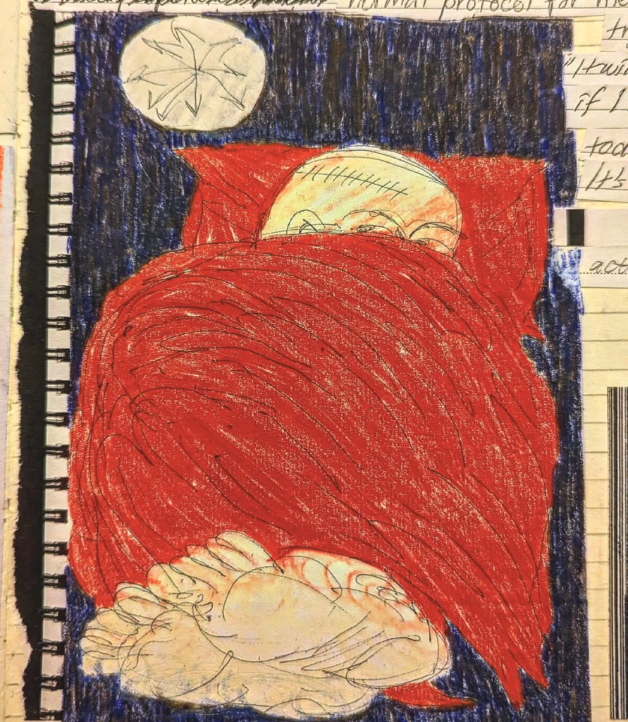 Tijdens één van mijn vele online zoektochten naar kunstwerken gemaakt vanuit het liggende perspectief, stuitte ik begin vorig jaar op een tekening van de Canadese Grant Ionatán. De tijd die Ionatán wegens taaislijmziekte in ziekenhuizen doorbrengt, drijft zijn beeldende werk.