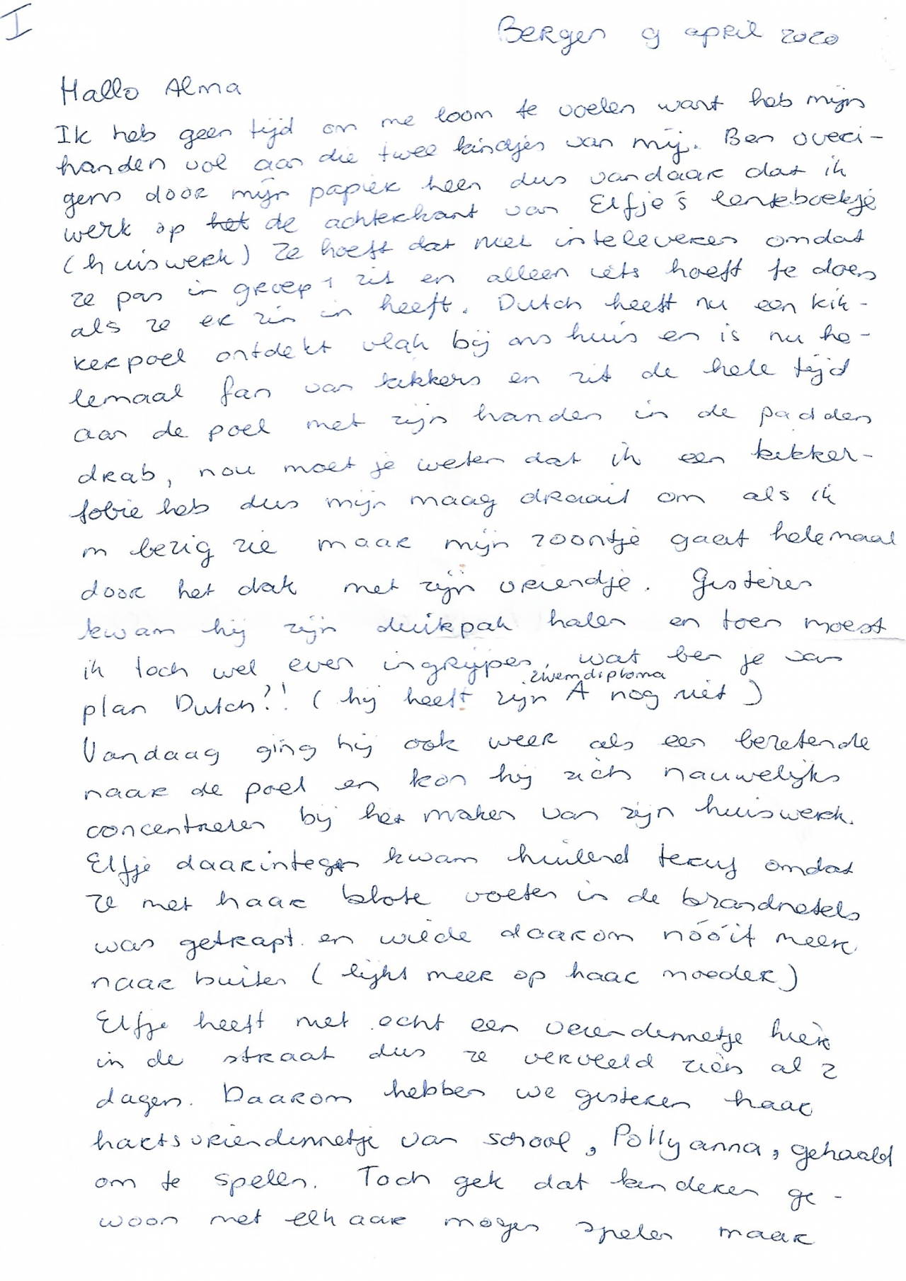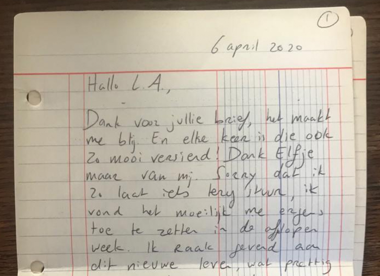 Wat was de brief trouwens mooi versierd! En ik moest lachen om de kinderen van L. die maar alles pakte in de supermarkt. Begrijpen zij wat er aan de hand is nu? Ik kijk vast uit naar jullie volgende brief.