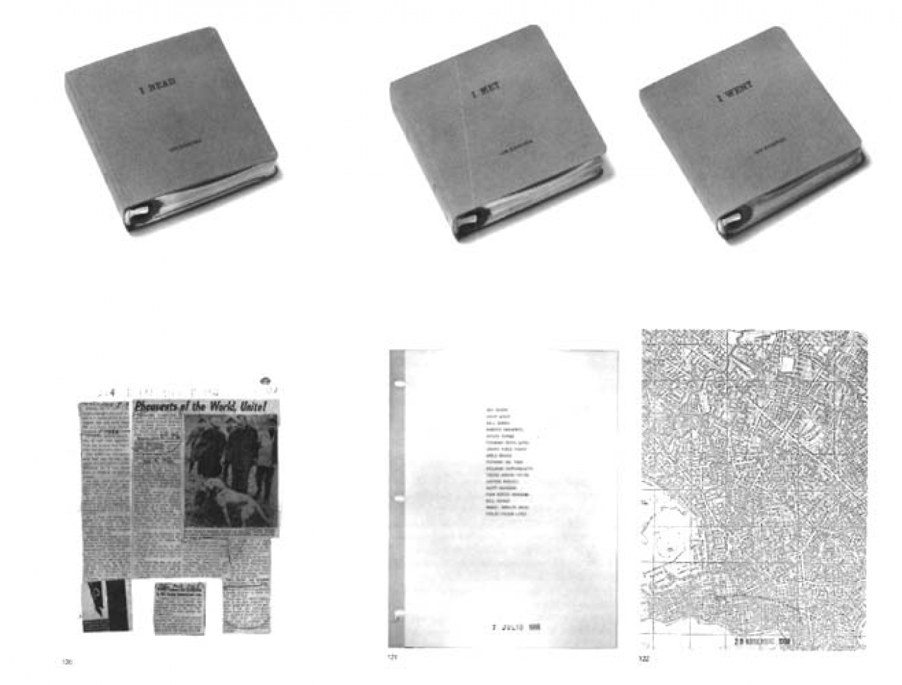 I Met van Kawara bestaat uit een lijst met namen van de mensen die hij op een dag ontmoet. I read is een lijst van per dag gelezen artikelen en I went documenteert op een plattegrond de weg die hij heeft afgelegd. De biografie wordt zo gereduceerd tot objectieve gegevens en cijfers. Het verbond tussen specifiek en algemeen wordt hier op een andere wijze gesloten dan bij Perec. Bij Perec zorgen de details voor de connectie met het persoonlijke en intieme. Kawara werkt met reductie als methode; het schrappen tot het aller-noodzakelijkste overblijft. In deze reductie wordt de essentie van ieder leven onthuld; de ontmoeting met andere mensen, de beweging door de ruimte, het verloop van de tijd. `Een dag uit het leven van Kawara bestaat uit een ritueel van steeds terugkerende handelingen: het systematisch invullen van lijsten en reeksen. Het ogenschijnlijk avontuurlijk kunstenaarbestaan verwordt tot een bijna ambtelijk bestaan met een onverwachte poëzie. Het resultaat is bloedserieus en ontroerend, suggestief en veelomvattend.