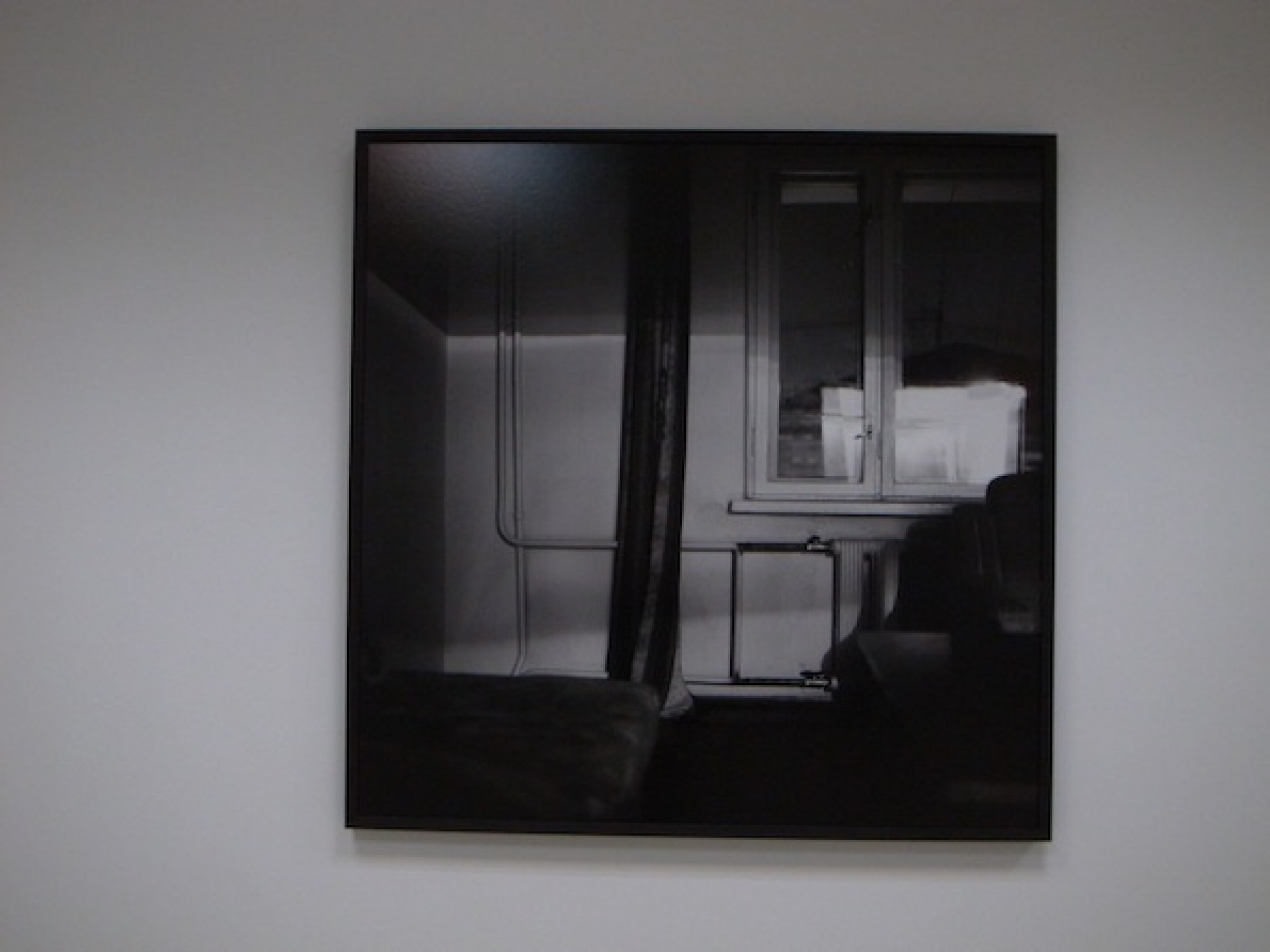 Ine fotografeerde het appartement in het donker, op de tast. Het licht komt van buiten, van de sterren, de straatlantaarns. Een groot diafragma. De foto zuigt koortsig het beetje licht in zich op. Ine Lamers beeldde zich in dat ze een rechercheur van de geheime dienst was en op zoek naar verboden zaken.