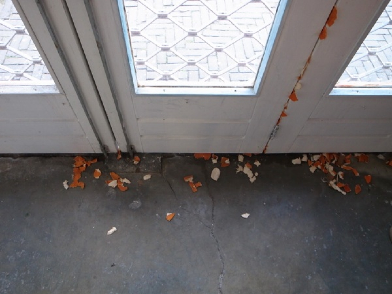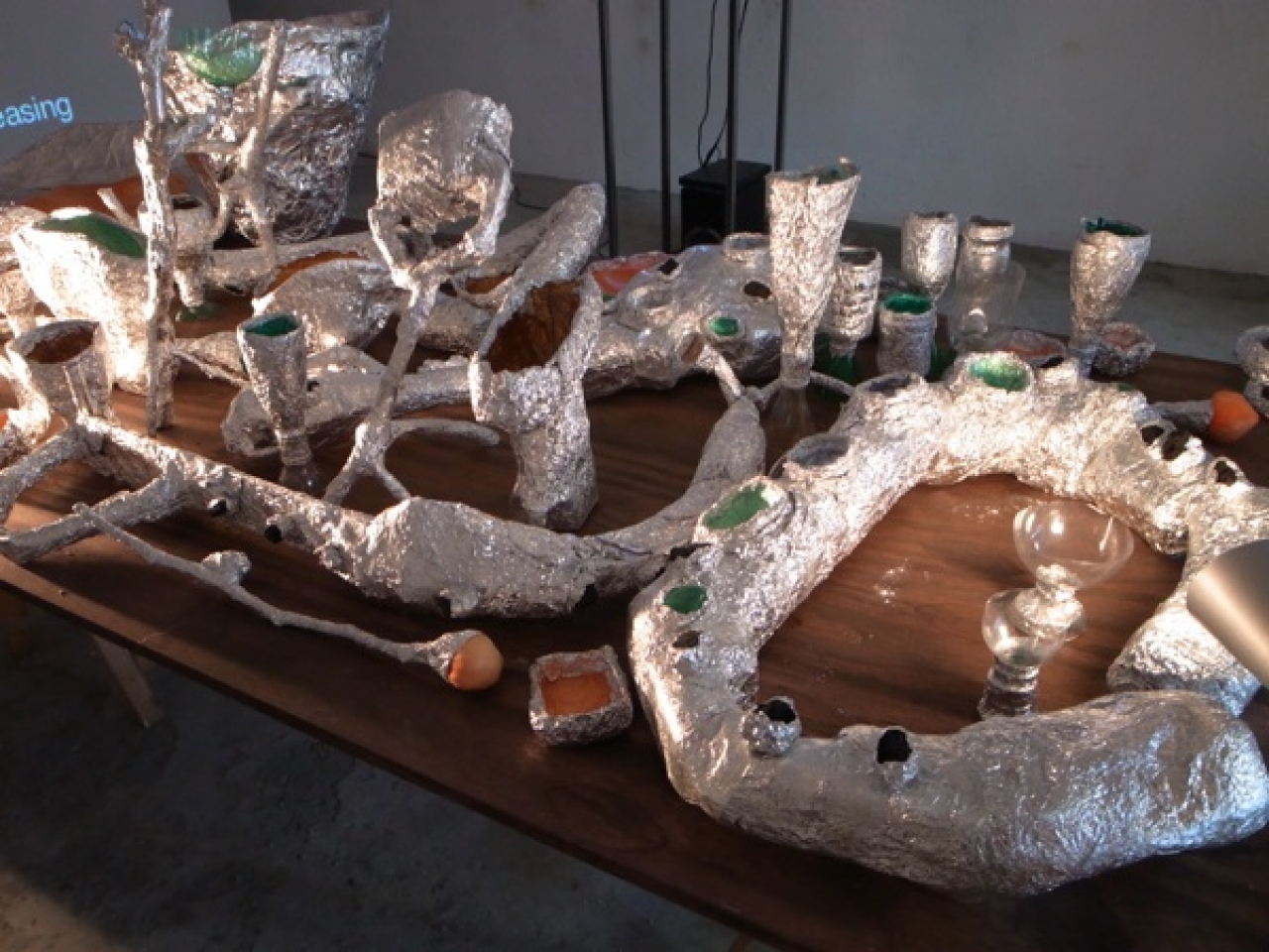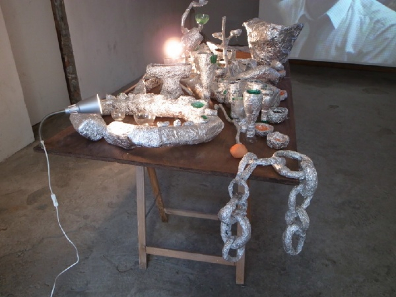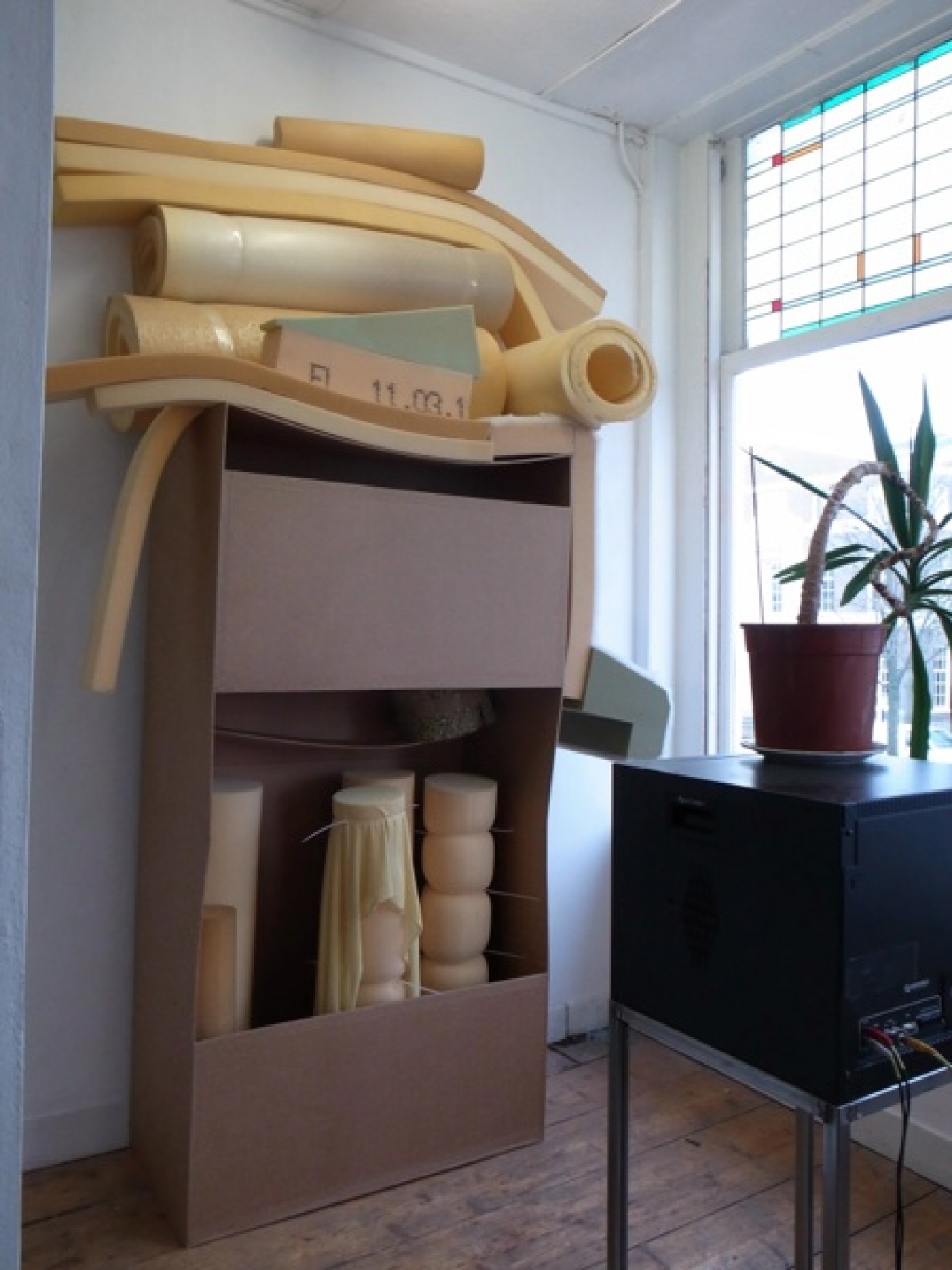 When I invite you to come to see the show ”Love Among the Artists” to the bitter end, you will not accuse me of mock modesty when I admit that it is a very full house, that it did not introduce you to a single person you could conceivably have been glad to know: Tom, Eleanor, John, Dana, Ciarán, Julika, Emily and Giles from London, Alex from Paris, Bettina from Berlin and Laure. Their shared a vicinity that was balancing between love and hate… It was the strangest site yet familiar. A penis vase. A film about a father. Some cat nip ball. Somebody dancing on bird feathers. Some of us turning into birds. Some peculiar Hague assemble. The bathroom we improved. A long table where we sat, ate and drank and told stories as the light went through us. To finally bury the reminiscence of the broken pieces and the memories of time together in the garden of a house that will vanish after us and only remain in memory…