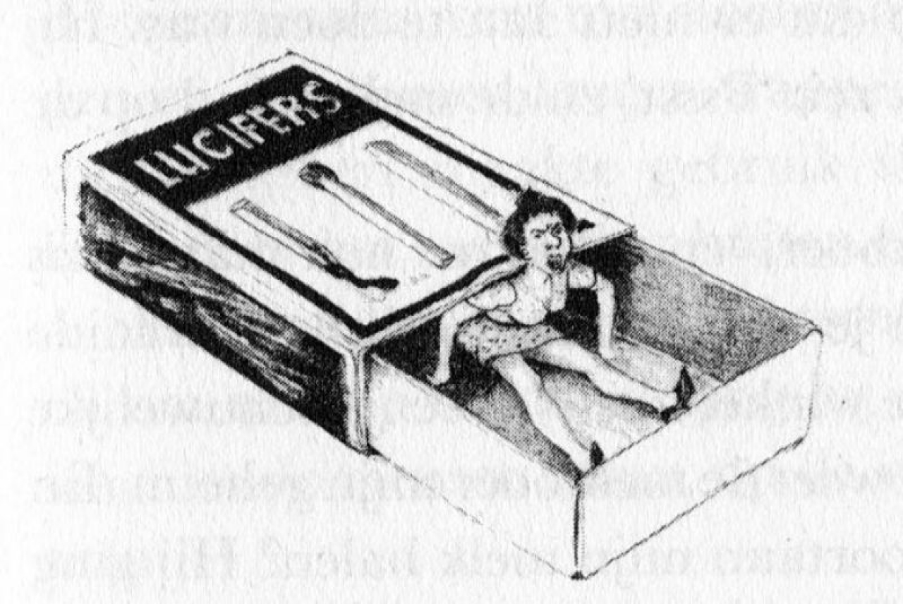 Geleidelijk aan is de lucifer een nostalgisch voorwerp geworden. Zullen er genoeg gebruikers overblijven om ze voor uitsterven te behoeden? Vast wel. Er is weinig ontroerender dan een doosje lucifers. Als een verzameling djins liggen de ongebruikte houtjes te slapen in hun kartonnen behuizing. Elke lucifer is een lont, een kans om iets in gang te zetten. Desnoods vonkt er slechts een kortstondige illusie, zoals in het verhaal van het meisje met de zwavelstokjes, dat op blote voeten bosjes lucifers verkocht op oudjaarsdag. Zij ontsnapte aan de kou en de honger door haar eigen onverkochte handelswaar te onsteken, en beleefde bij elke lucifer een visioen tot de dood haar overviel. Against a single match the darkness flinches – zo luidt de naam van een dia installatie van mediakunstenaar Jeanne C. Finley uit 1998. Soms is een titel een kunstwerk op zichzelf.
